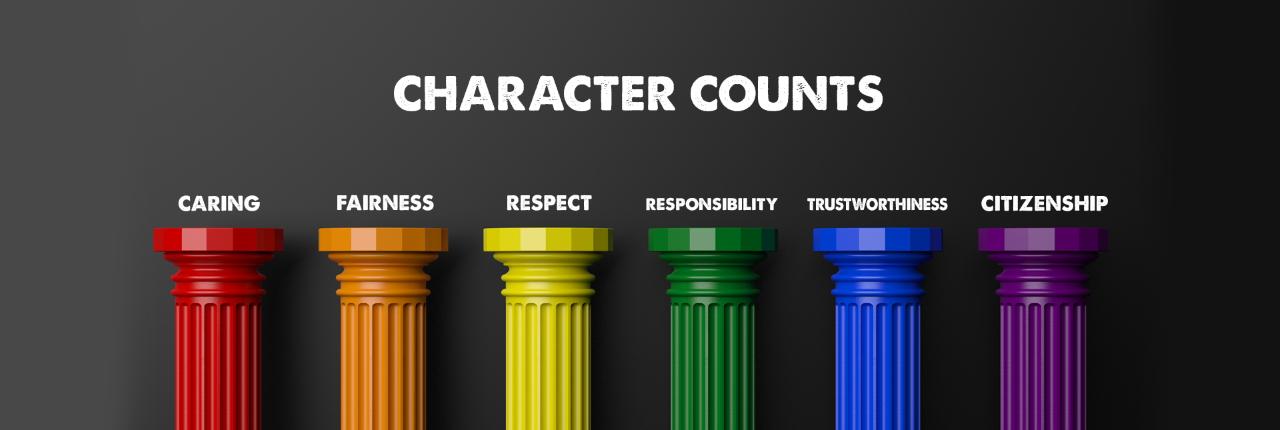 The Six Pillars of Character are Trustworthiness, Respect, Responsibility, Fairness, Caring, and Citizenship. This month, we are focusing on Responsibility.