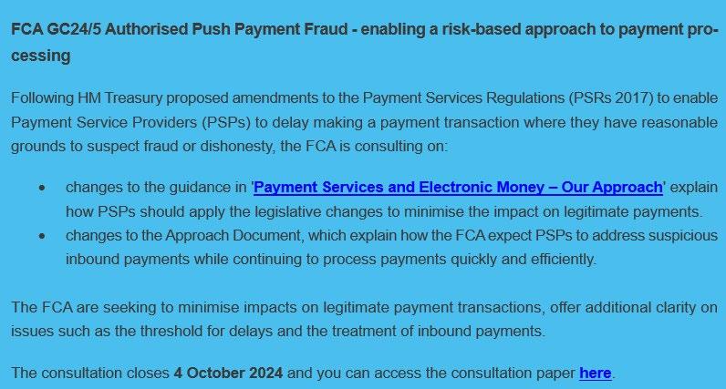 FCA GC24/5 Authorised Push Payment Fraud - enabling a risk-based approach to payment processing