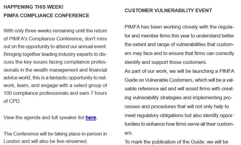 PIMFA Bulletin, the latest industry news impacting you and your firm including;