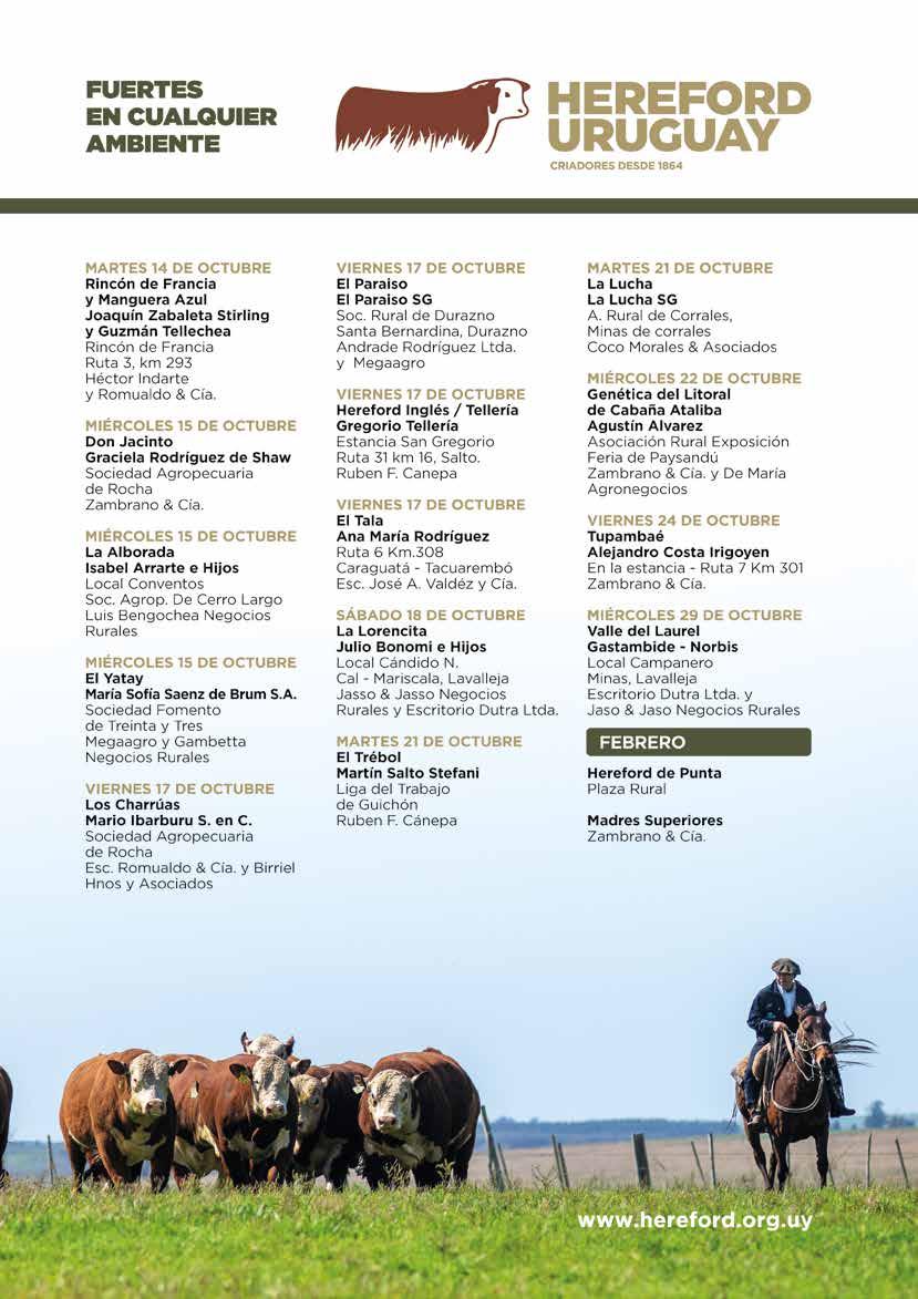 Hereford uruguayo: una referencia reconocida a nivel mundial 314 Cartelera de Remates Auspiciados 2025 312