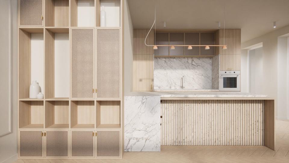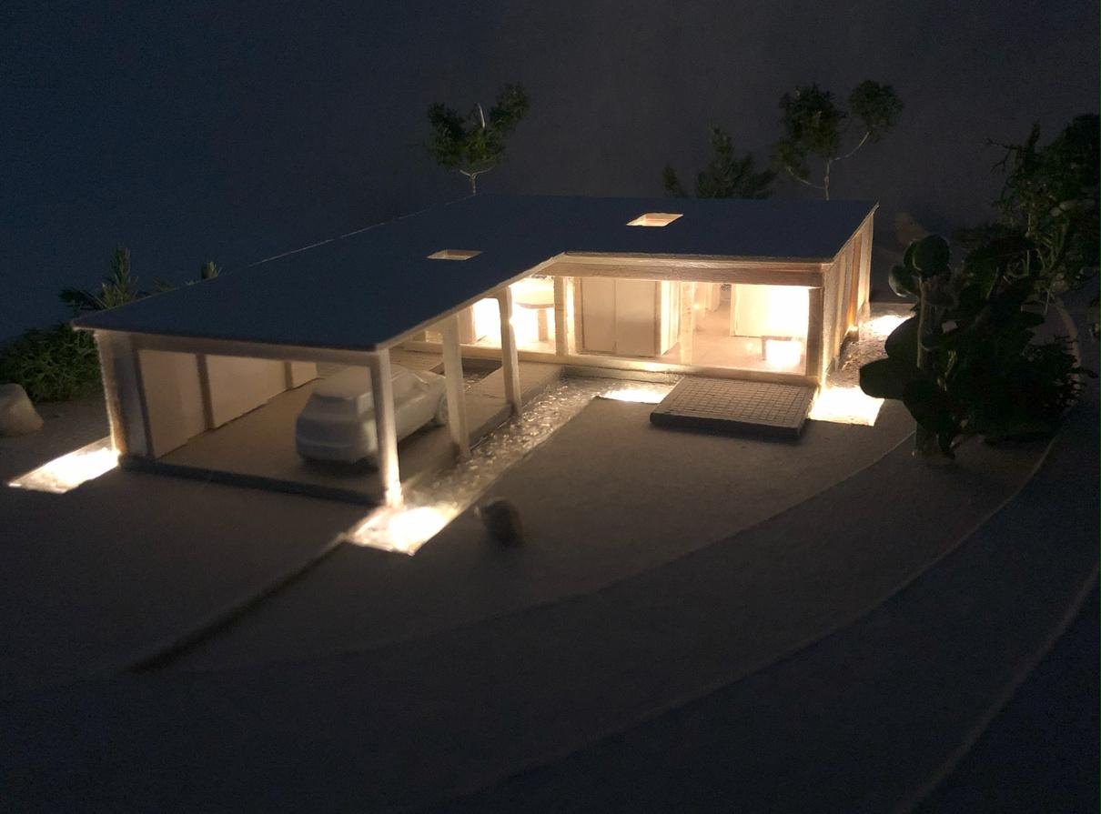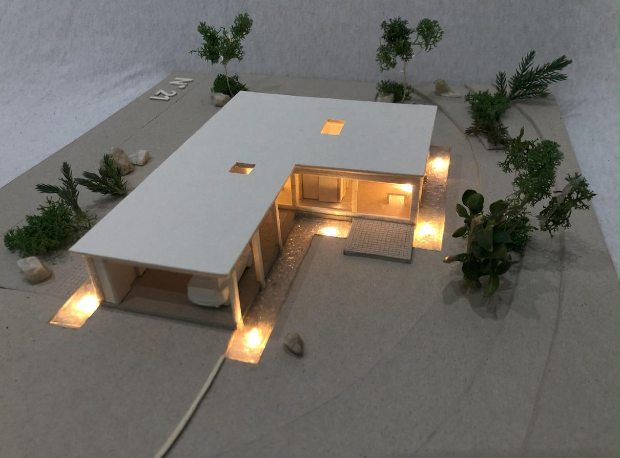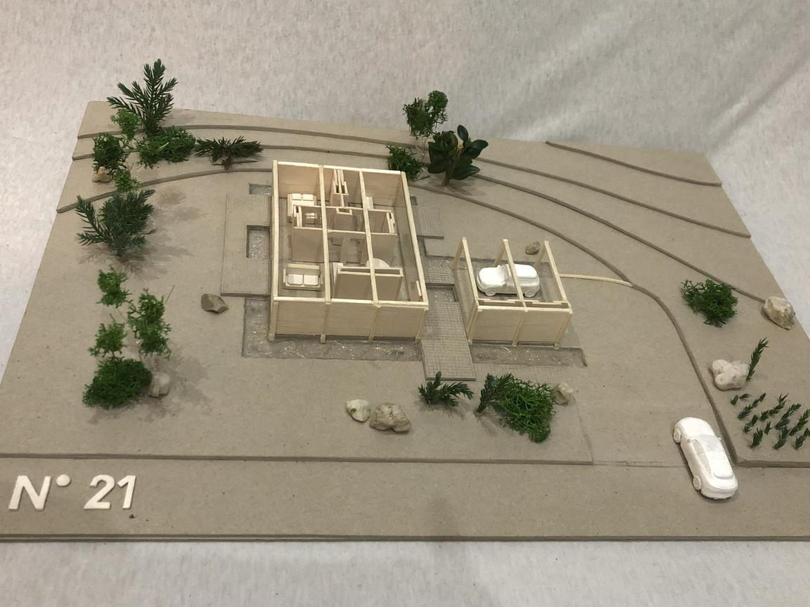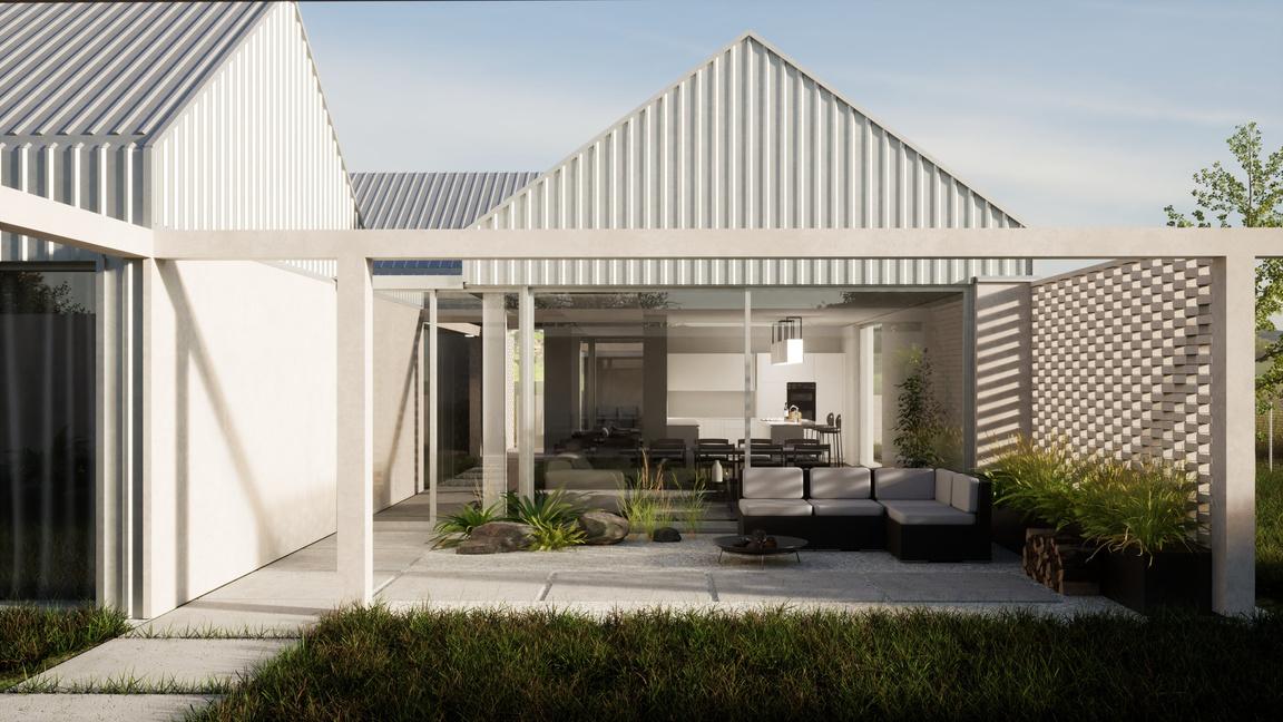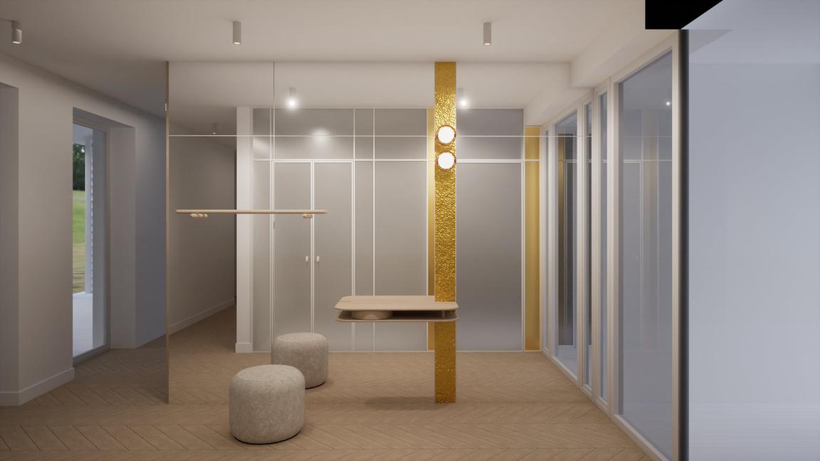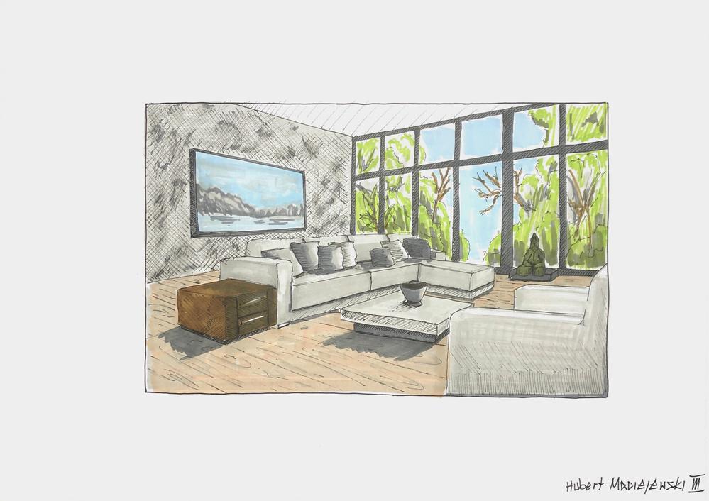 Starałem się jak najdokładniej oddać minimalizm, bliskość z naturą oraz prostotę charakterystyczną dla założonego stylu budynku.