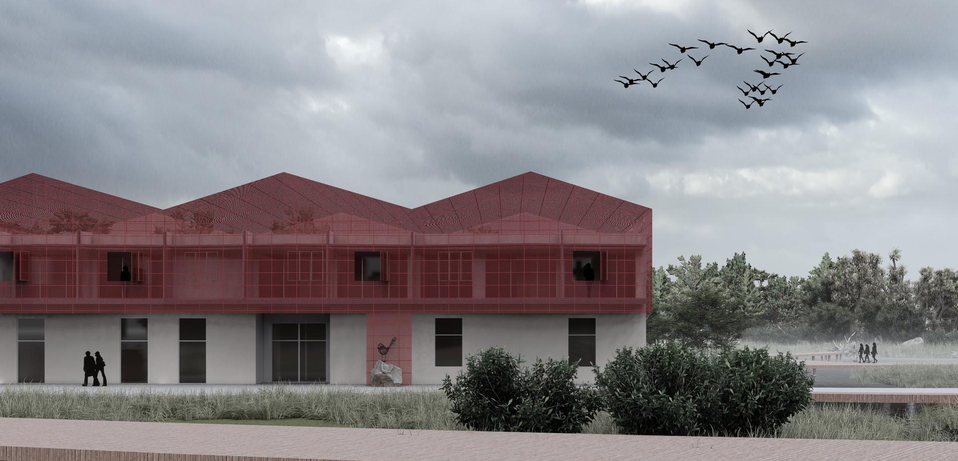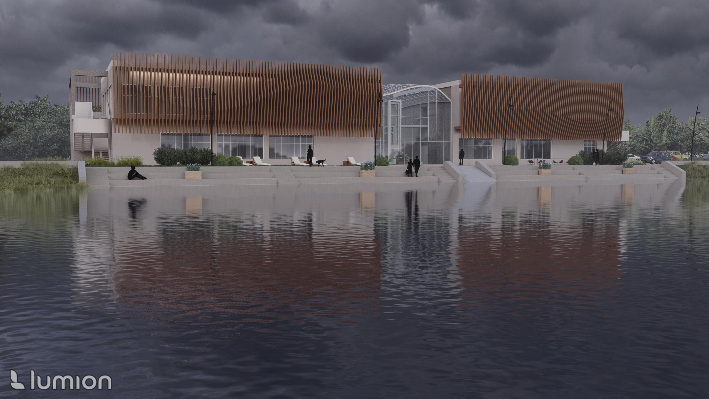 Wstępny projekt pod dyplom inżynierski budynku o charakterze rekreacyjnym połączonego z restauracją oraz pokojami hotelowymi przy ulicy Nadwiślańskiej na obszarze Wyspy Sobieszewskiej w Gdańsku oraz ciągu pieszego wzdłuż Martwej Wisły. Obiekt wyróżnia się funkcją oraz kubaturą, a jego forma inspirowana byłą falami marskimi.