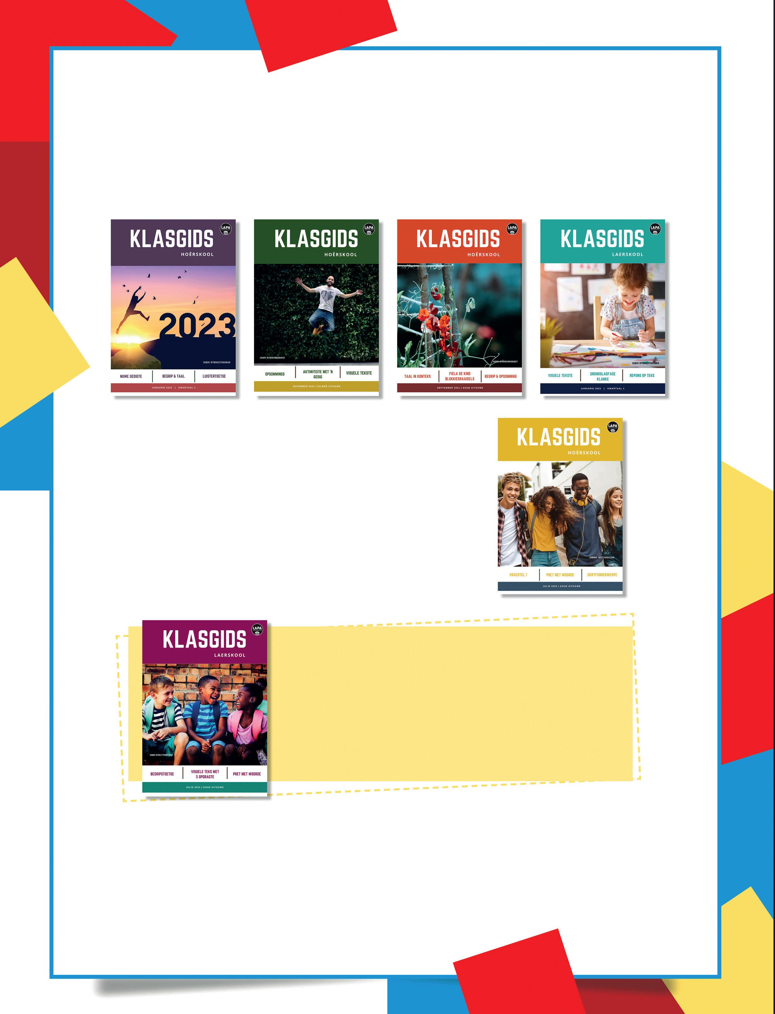Die Klasgids bestaan al sedert 1965 en is een van die Afrikaansonderwyser se beste vriende in die klaskamer. Natuurlik het die pandemie en ons posstelsel ons genoodsaak om aan te pas en daarom is die gids op hierdie stadium elektronies beskikbaar. Een gids kan vir die hele skool se Afrikaansonderwysers aangekoop word, en teen slegs R600 ontvang jy vier digitale uitgawes van 64 bladsye wat die volgende insluit: Toetse en eksamenvrae met nasienriglyne. Huistaal- en eersteaddisioneletaal-take vir elke fase. Visuele tekste en luisterbegrippe. Bespreking en ontleding van letterkundige tekste.