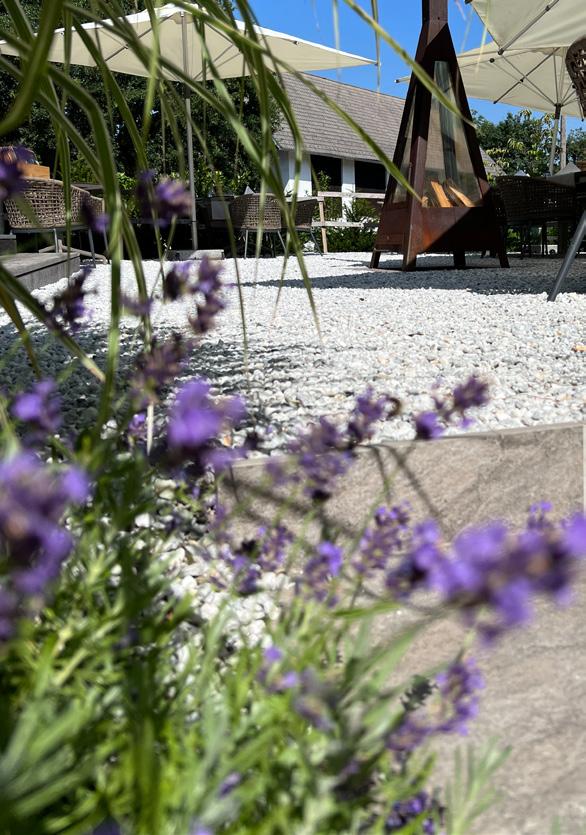 Unser Restaurant verfügt über eine einzigartige Terrasse, umgeben von Schilf und mediterranen Kräutern und Sträuchern, die südliches Flair in Kärnten verbreitet. Ein knisterndes Feuer im Gartenkamin auf der Terrasse schafft eine besonders einladende Atmosphäre, ideal für entspannte Stunden oder festliche Anlässe im Freien.