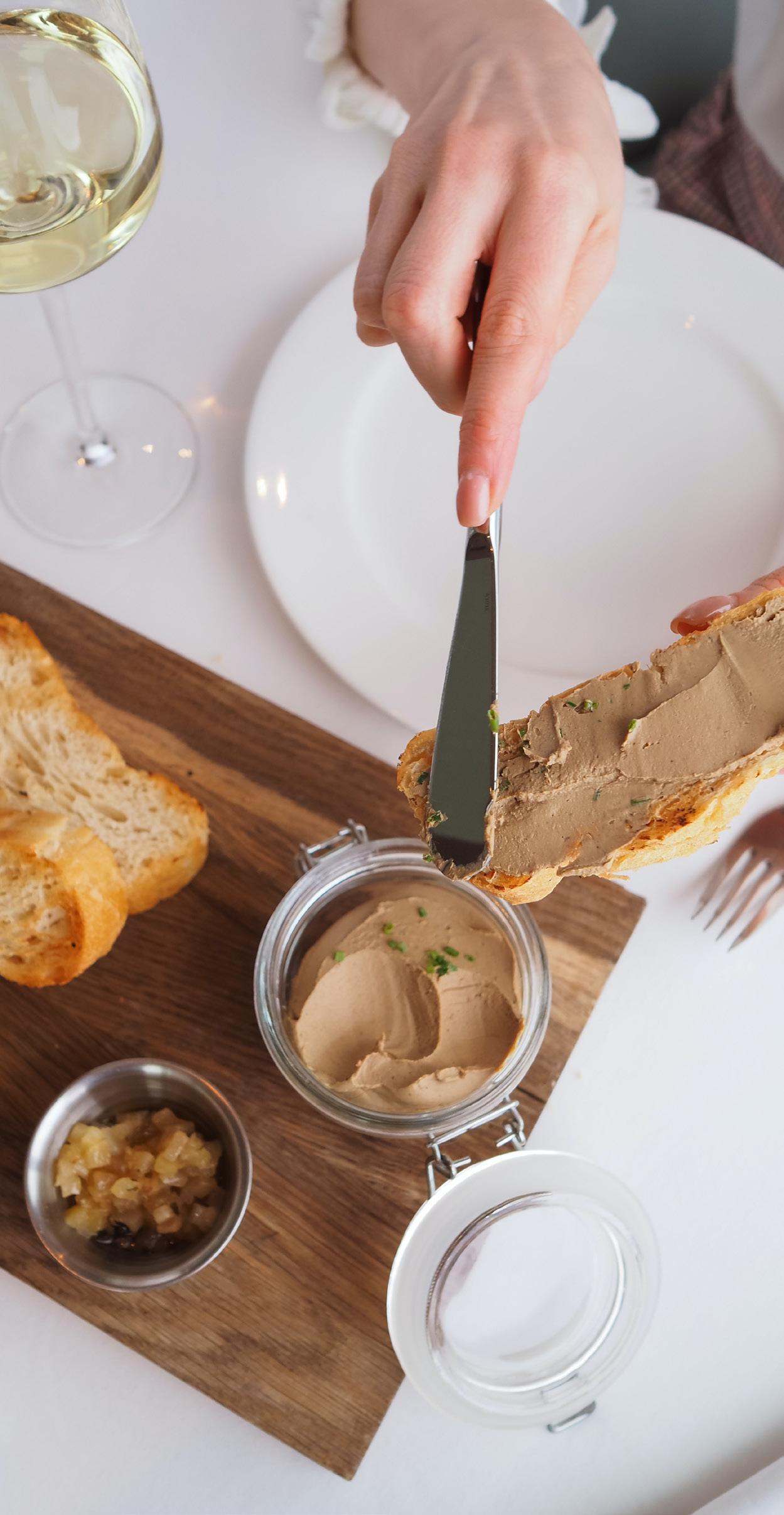 Fry some finely chopped garlic cloves in butter. Gradually add in the chicken liver and add some brandy. After the brandy reduces and the liver is almost fully cooked, use a hand held blender and mix the ingredients into a fine paste. Allow the paste to cool in a bowl and serve cold.