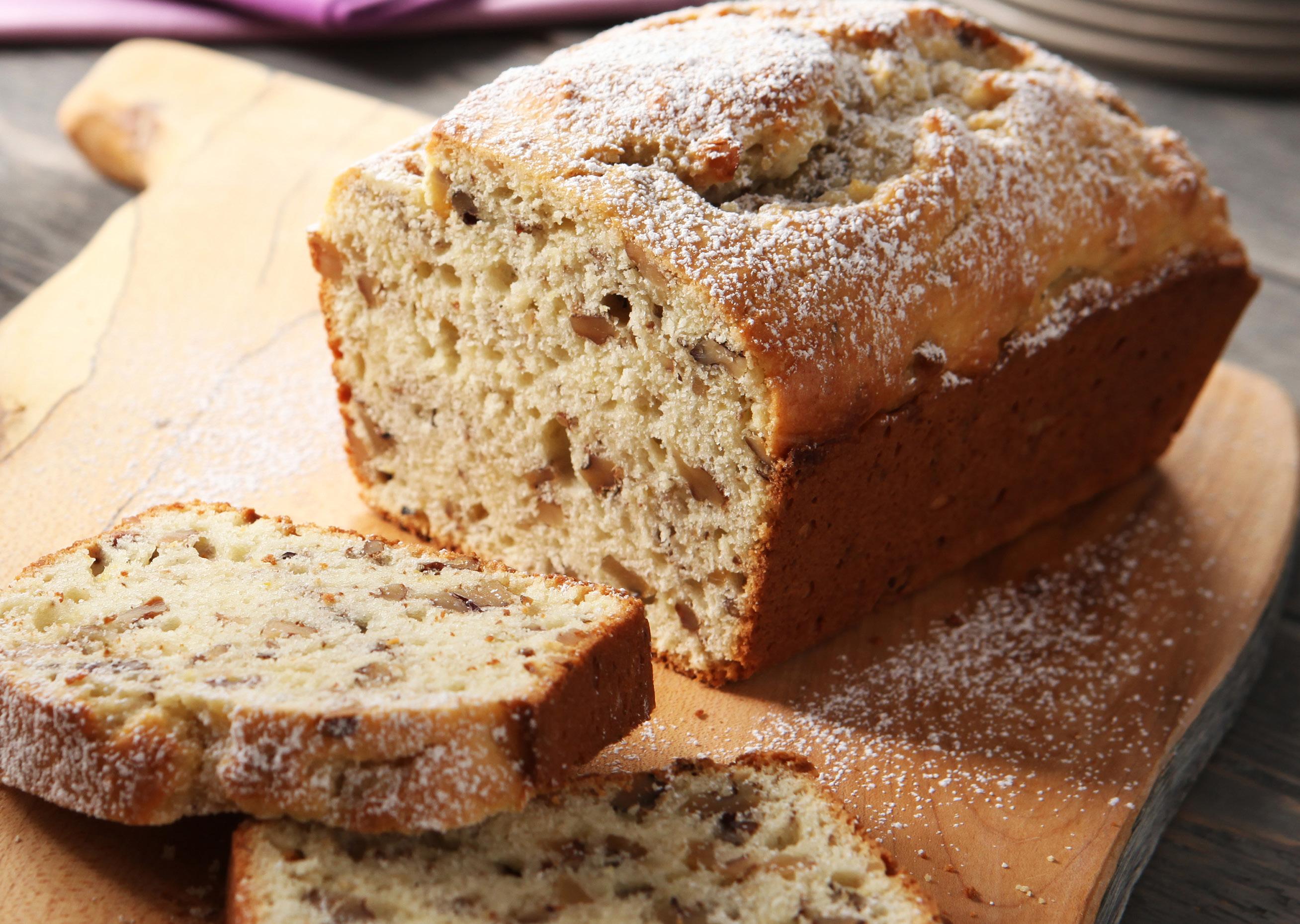 Pour the mixture into the baking dish and bake until the loaf is well-risen and golden brown. Poke it with a skewer to make sure the dessert is fully cooked.