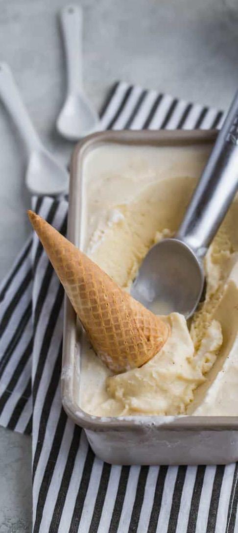 The dish should be covered and placed in the freezer for 4-5 hours if you want to serve it whilst it is still creamy, or longer if you prefer the ice cream harder and served sliced between wafers for homemade ice cream sandwich.