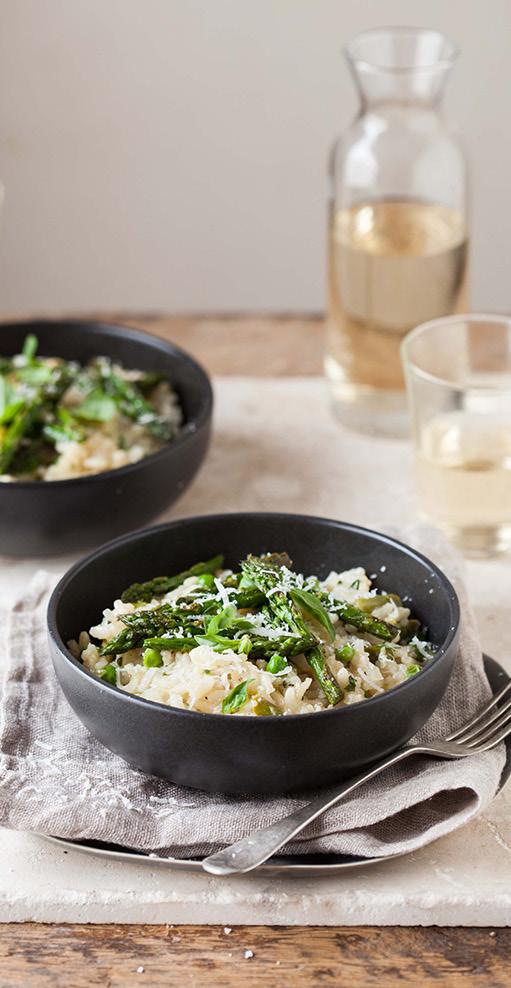 Stock White Wine Onion Celery Sage/Mint/Dill Chili/Lime Pine Nuts Truffle Parmesan Asparagus