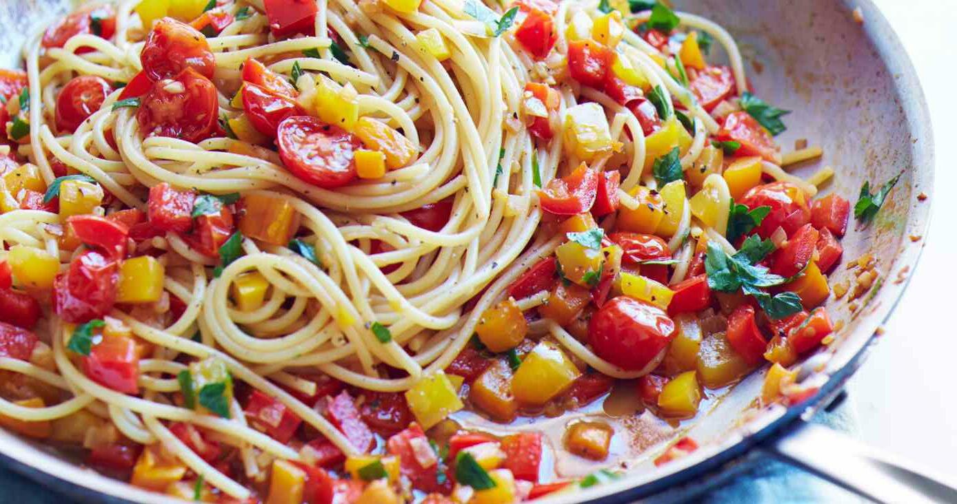 Spaghetti no3 Onions Garlic Bell Peppers Sundried Tomatoes White Wine Harissa Fresh Cream Parmesan