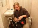 David Åkerlund från jourgruppen är vvs-tekniker och ingår i jourgruppen, här byter han ut en trasig toalett. I Jourbilen finns utrustning och verktyg för de flest typer akuta reparationer som kan krävas. Text och bild: Johan Björklund