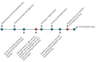 Viktigast är att stå i kö och samla poäng. Ju fler poäng desto större chans att få hyra. För att erhålla ett eget kontrakt måste hyresgästens inkomster uppfylla en fastställd ekonomisk norm. I det fall inkomsterna inte riktigt uppfyller normen kan hyresintäkten säkerställas genom en borgensman.