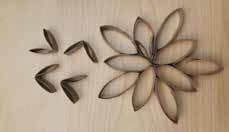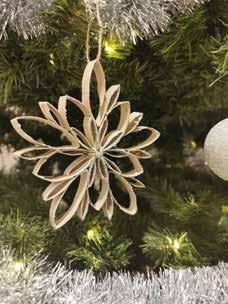 Börja med att limma ihop fem stycken så att du får en grund, sen bygger du på utåt med fler. Du kan vika bitarna dubbla eller klippa av dem för att variera mönstret. Knyt ihop stjärnan i mitten med ett snöre om den är svår att sätta ihop. Lägg lite lim på kanterna och strö över glitter.