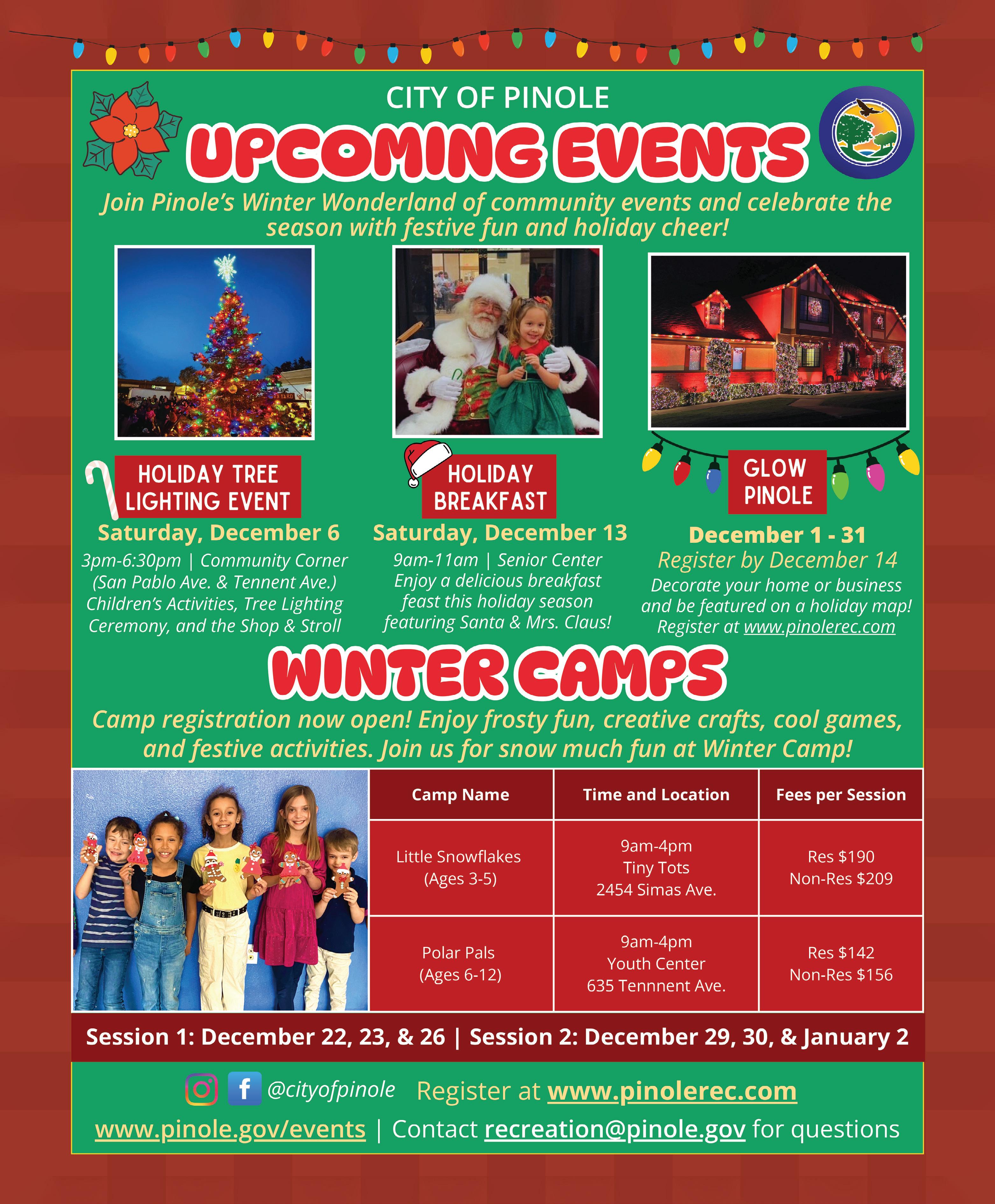 · HOLIDAY TREE LIGHTING · Fernandez Park, Pinole · December 6, 3-6:30 pm Pinole.gov