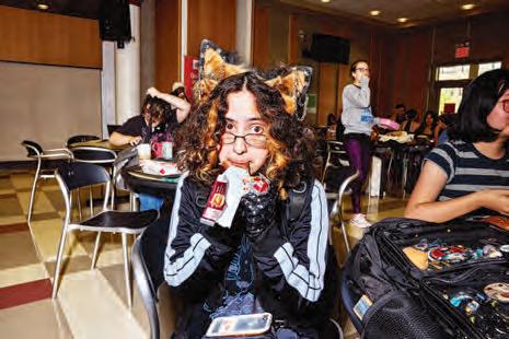 THIS PAGE, CLOCKWISE FROM LEFT: Jacey Durrant and Almira Makhanbetova, both Advertising and Marketing Communications; Mina Rincones-Parra, Communication Design; students in line; Mya Williams, Illustration; Naomi Schulz and Zion Doucettperry, both Photography; Melanie Reyes, Advertising and Marketing Communications.