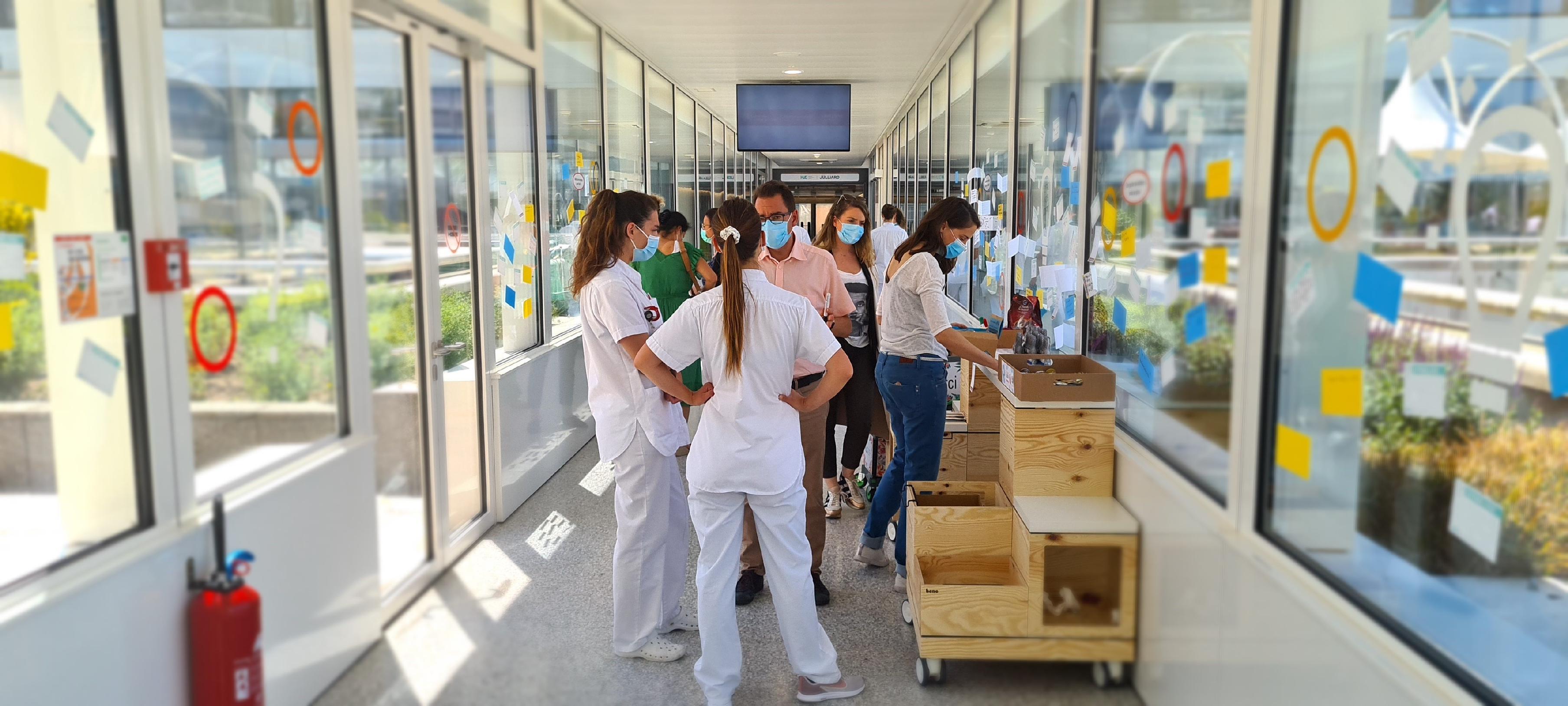 Les cheffes et chefs de projet Vision 20/20 vont à la rencontre de l’ensemble des collaborateurs et collaboratrices sur 8 sites des HUG avec un grand goûter sur un chariot pour échanger sur les enjeux, les dé fis et les besoins pour créer l’hôpital de demain.