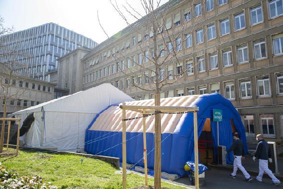 Lors de la crise sanitaire COVID-19, le Centre de l’innovation pivote ses activités pour participer à l’effort collectif. Plusieurs membres de l’équipe retournent dans les soins ou prêtent mains fortes aux cellules de crise. Le reste de l’équipe se mobilise pour coordonner les activités d’accueil de la tente de tri COVID-19. En 24 heures, le Centre de l’innovation recrute quelques 30 bénévoles, dont notamment des étudiantes et étudiants de la Faculté de médecine de l’Université de Genève ainsi que des collaborateurs et collaboratrices de l’institution, pour tenir l’accueil de la tente de tri de la mi-mars à la mi-juin 2020.