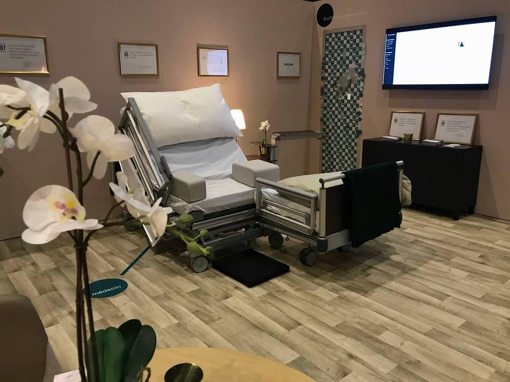 “Ambiance très cosy. Permet l'indépendance du malade tout en favorisant les interactions avec les soignants.”Visiteur au salon Planète Santé Et si... la chambre d’hôpital de Mme Dupont était un lieu chaleureux et convivial? Et si... le lit était optimisé pour faciliter les échanges et les levées ? Et si... Mme Dupont avait un espace pour recevoir sa famille ?