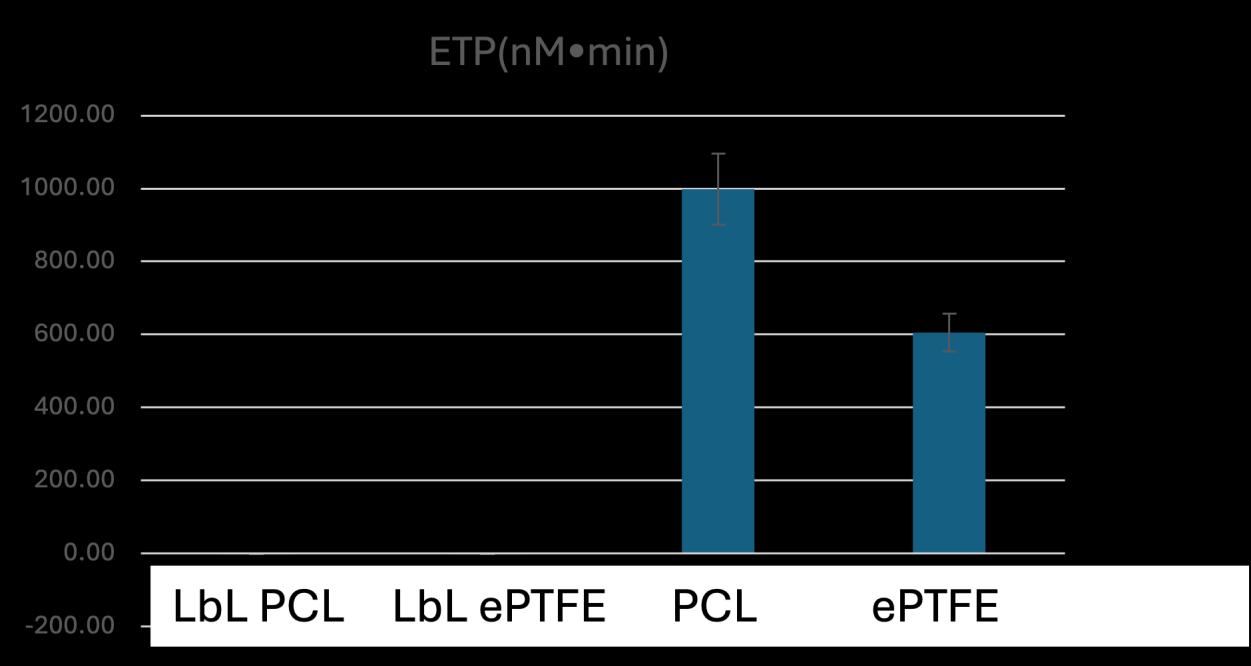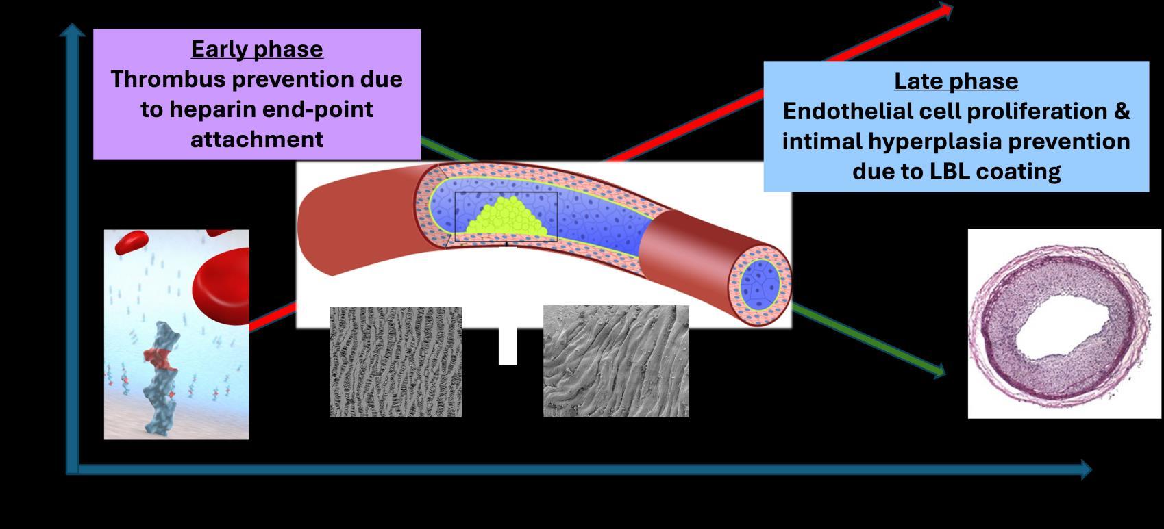 Currently, there is no commercial small calibre vascular prosthesis (internal diameter less than 6 mm) for surgical revascularisations due to poor clinical patency results caused by early thrombosis and late intimal hyperplasia (Abbaszadeh et al , Halbert et al ) We have therefore developed an anti-thrombogenic and cell-favouring Layerby-Layer (LbL) coating
