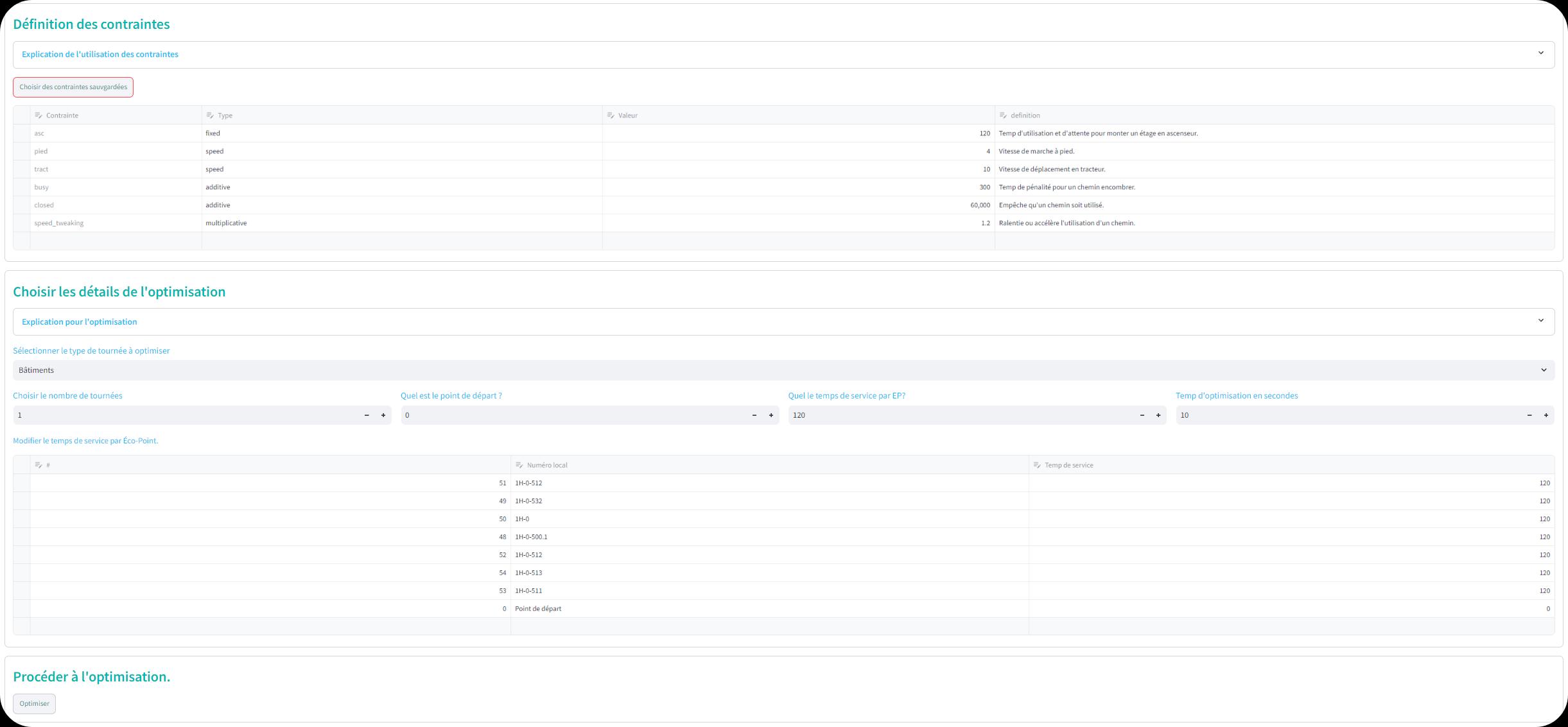 • Intégration de contraintes (vitesses de déplacement, ascenseurs, travaux)