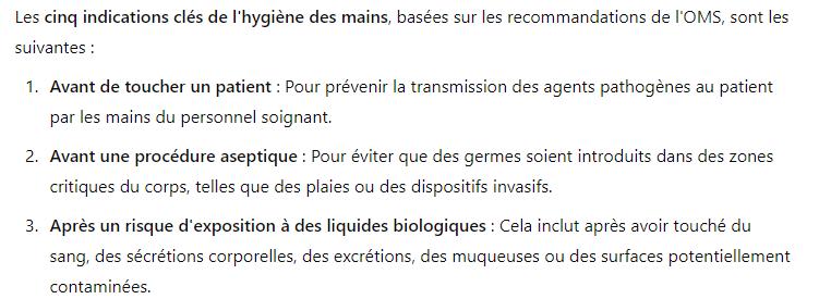 Les grands modèles de langage (LLM) offrent des perspectives prometteuses pour améliorer la prévention et le contrôle des infections en facilitant l'accès rapide aux protocoles médicaux, en soutenant la prise de décision clinique et en automatisant des tâches administratives Ils peuvent aider à la formation continue des professionnels de santé, à l'analyse de données épidémiologiques et à la gestion des crises infectieuses En outre, ces modèles permettent de personnaliser les recommandations en fonction du contexte local et de favoriser la collaboration interdisciplinaire Toutefois, leur intégration dans les pratiques de santé doit être accompagnée d'une supervision rigoureuse et d'une validation par des experts, afin de garantir l'exactitude et la pertinence des recommandations Les LLM représentent un outil complémentaire pour renforcer les stratégies de lutte contre les infections, avec un potentiel d'évolution important à mesure que la technologie progresse.