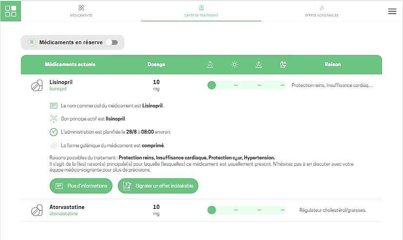 • Visibilité complète et autonome sur les traitements hospitaliers et informations vulgarisées à leur intention