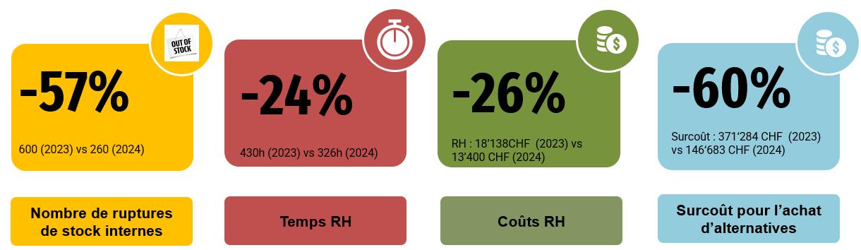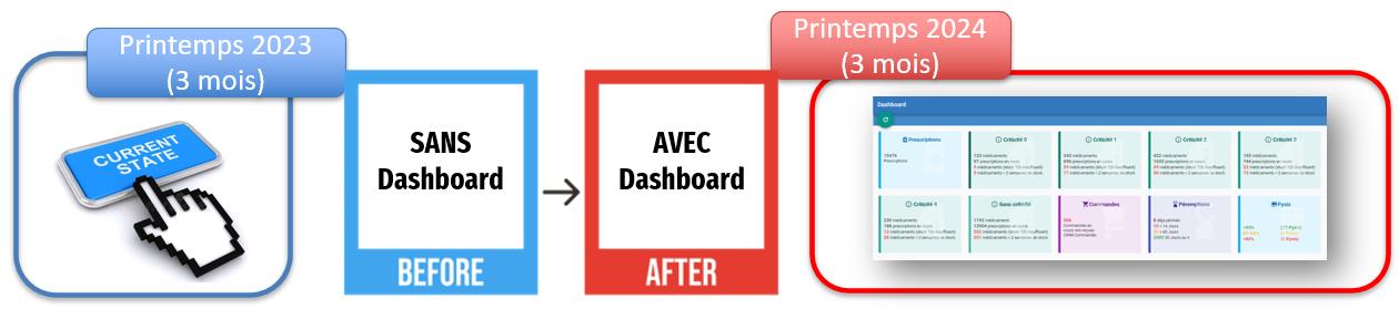 Une étude prospective interventionnelle a été réalisée pour évaluer l’impact de l’outil sur des indicateurs logistiques, financiers et temporels en comparant les données sur une période de 3 mois sans outil (01 02 2023 au 30 04 2023) avec l’utilisation de l’outil (01.04.2024 au 30.06.2024).