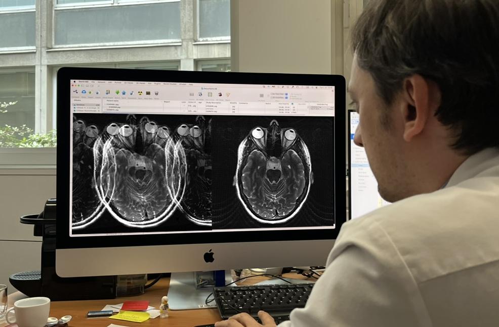 Les HUG offrent une thérapie non-invasive destinée aux patient-es atteint-es de tremblement pharmaco-résistant Le guidage en temps réel par IRM de cette thérapie est essentiel Le nombre des procédures répertoriées à l’échelle mondiale dépasse le total de 10’000 L’amélioration du tremblement postural est un critère important de réussite thérapeutique Compte tenu de l’environnement IRM, il est évalué actuellement en routine clinique de manière qualitative ou simplement en visuel à l’œil nu Une mesure fiable quantitative et reproductible du degré d’amélioration du tremblement postural en cours de procédure devrait permettre d’adapter au mieux la conduite thérapeutique