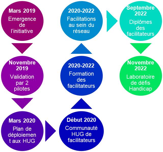 Les HUG, comme toute grande institution, possèdent leur lot de projets qui s’enlisent sans atteindre les objectifs escomptés. Fort de ce constat, l’approche Idéaxion a été développée pour résoudre des défis dans un temps limité, de manière agile et participative, et ainsi accélérer les projets ou initiatives.