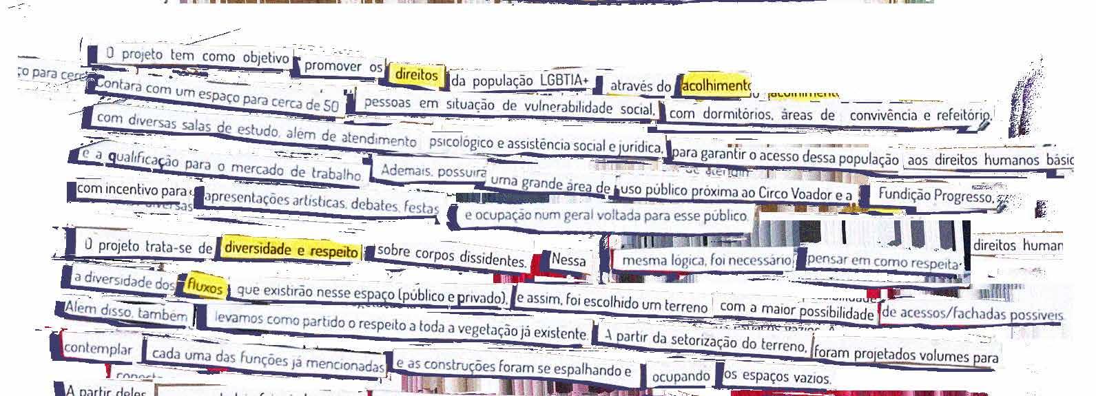 A partir das cores e do figurativo, expressou-se os sentimentos que envolvem a arquitetura e como ela nos atravessa e molda o sentir.