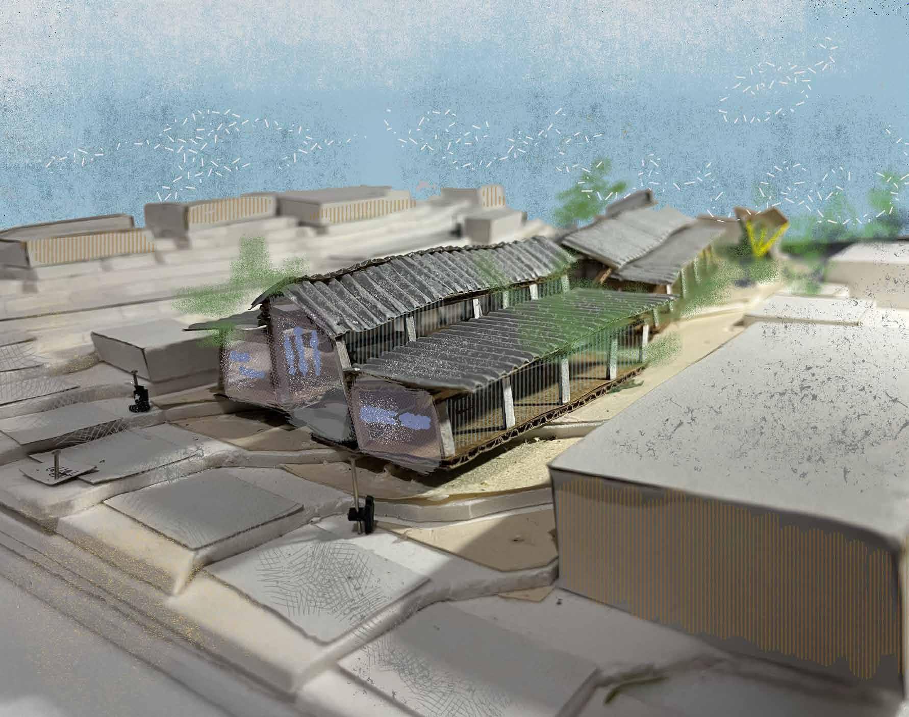 Já no segundo trabalho, o objetivo foi buscar maneiras menos tradicionais de representação gráfica digital do espaço, ou seja, como fazer renders que não necessariamente fossem hiper-realistas e que pudessem também trazer traços artísticos. Dessa maneira, foi desenvolvido o estilo “low-poly”, simples porem bem expressivo. Assim, a partir da modelagem, renders e de animações renderizadas no 3dsMax, fui representando os principais elementos feitos em análise.