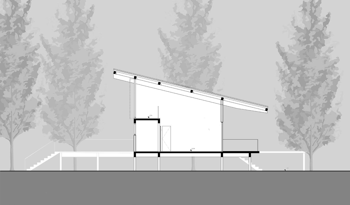 Devido a proximidade do terreno com a lagoa, foi encontrada uma extensa mata ciliar. A proposta para benificar a vista portanto foi elevar a casa 1,5m, com inspiração nas palafitas encontradas na região amazônica.
