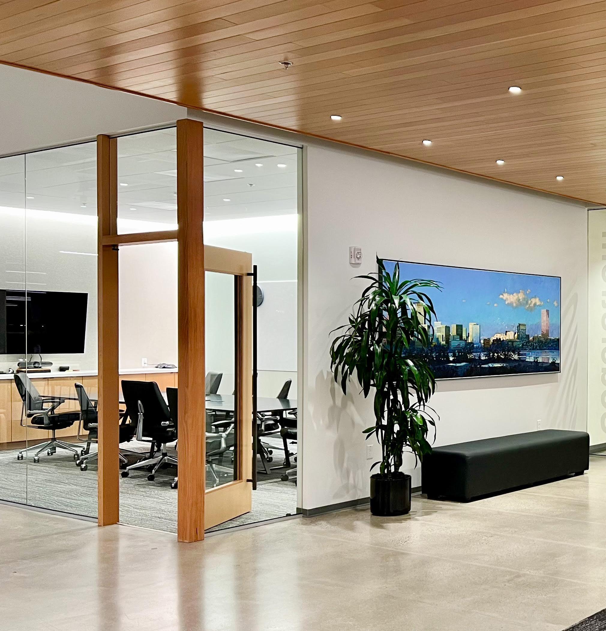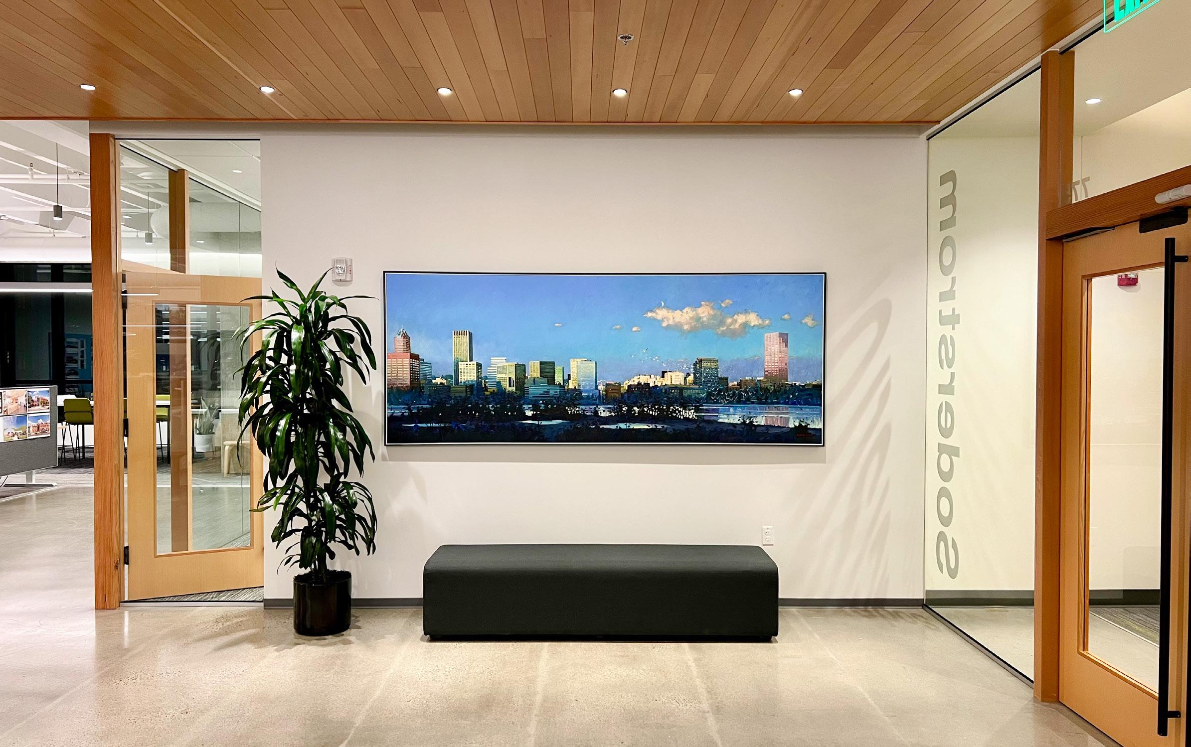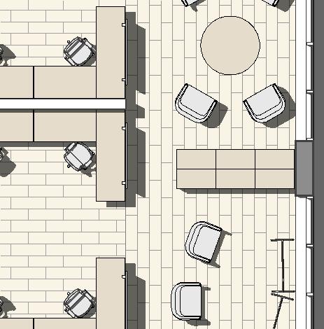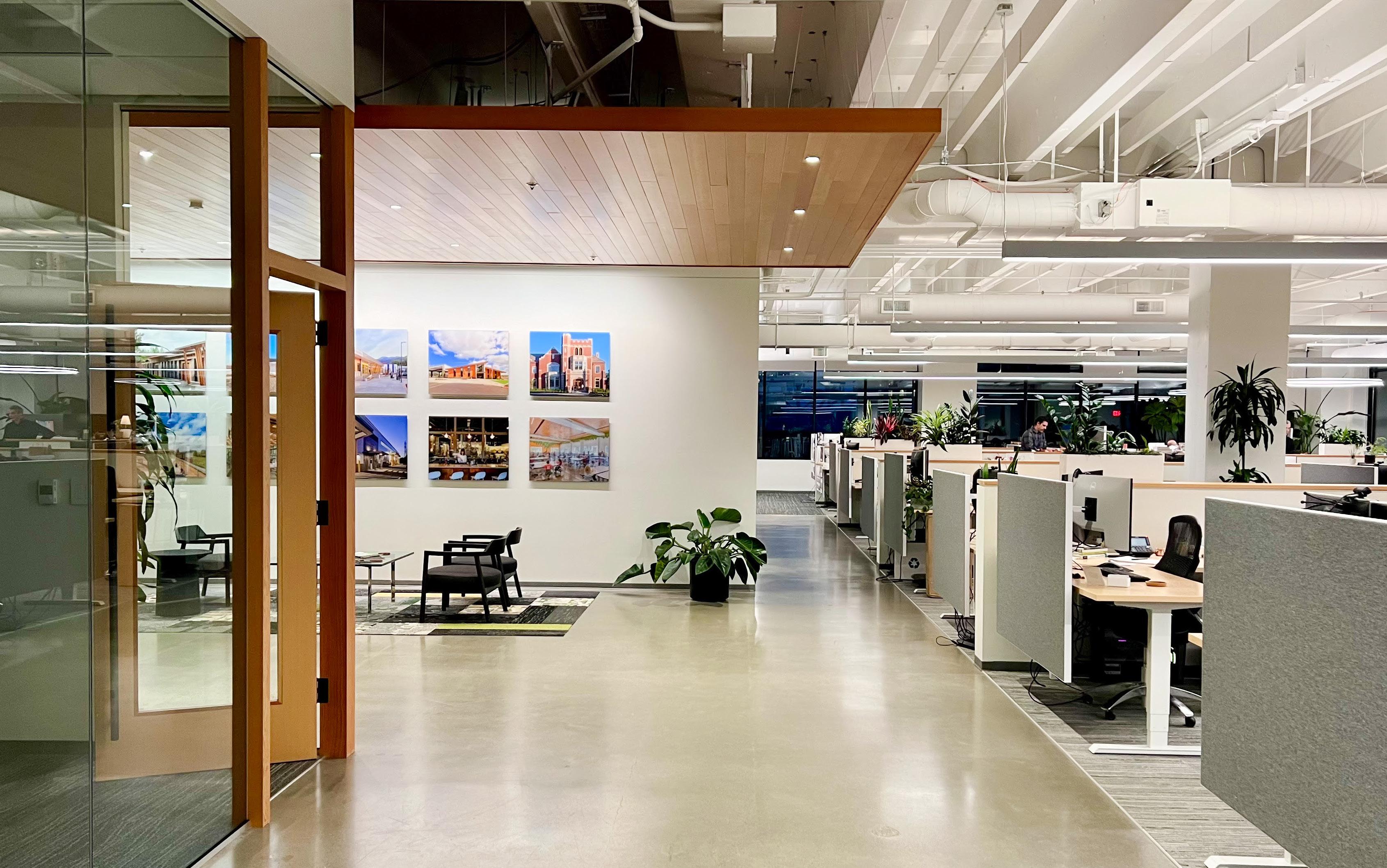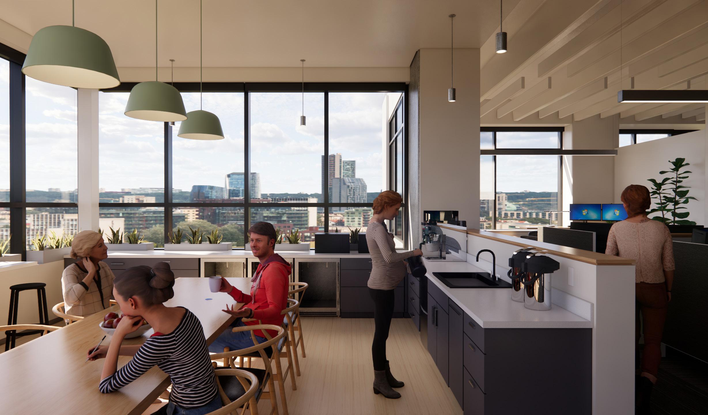 Description: A tenant improvement on the 7th floor of the Lovejoy Office Building overlooking the Peal District. We focused on creating a compelling new space for employees to work in. Relocating from our old Albers Mill location, this was a big step up, with upgraded workstations, new meeting spaces and an enlarged kitchen with access to outside seating areas. The goal was to create a warm and inviting contemporary space with ample access to daylight. My role encompassed the design, modeling, and visualization of the new space.