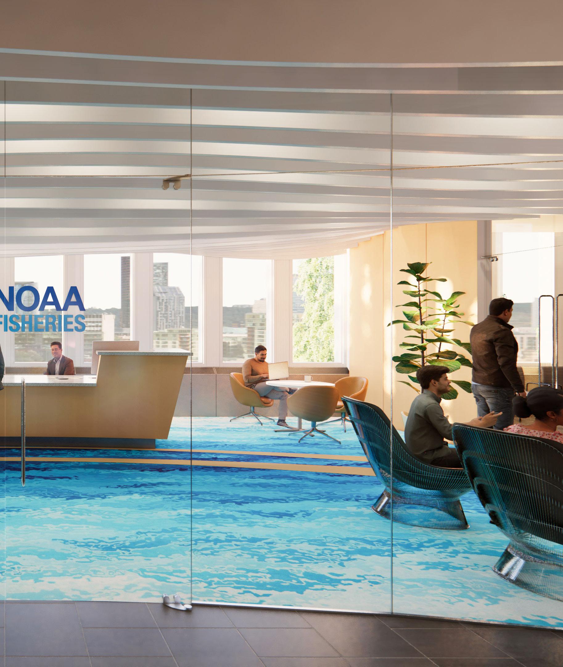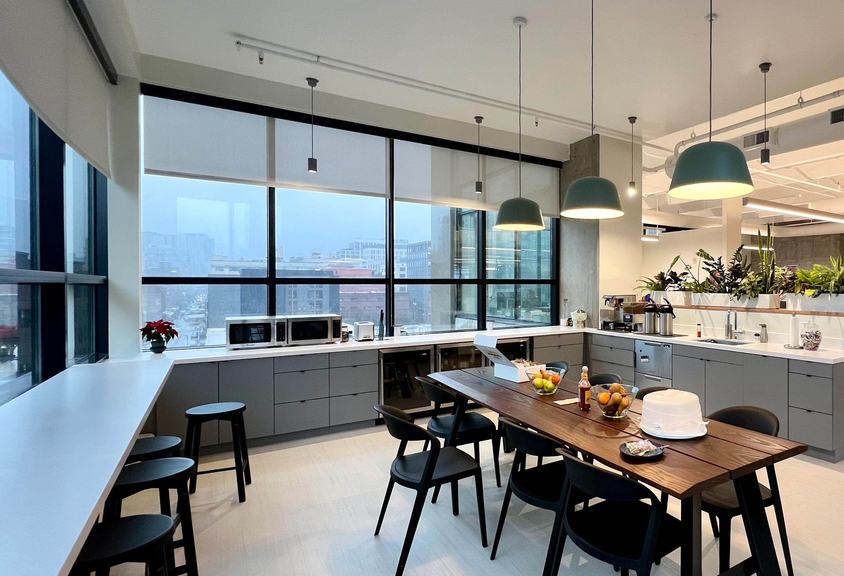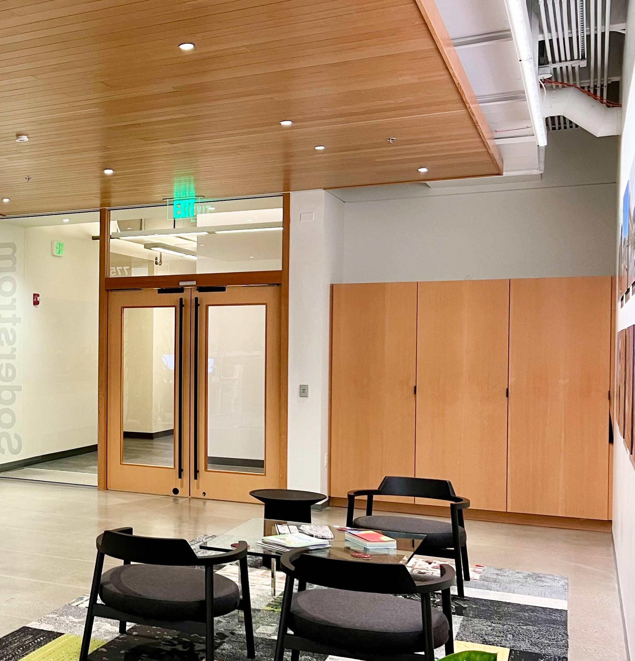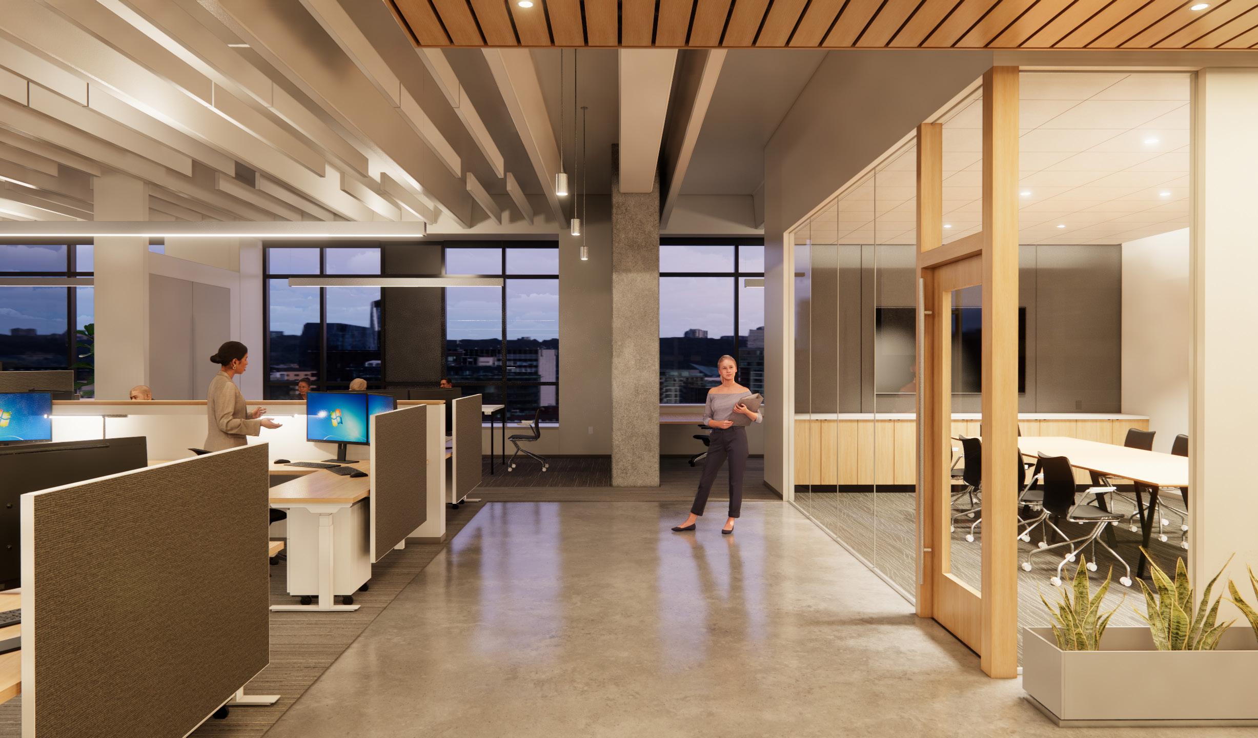 Description: A tenant improvement on the 7th floor of the Lovejoy Office Building overlooking the Peal District. We focused on creating a compelling new space for employees to work in. Relocating from our old Albers Mill location, this was a big step up, with upgraded workstations, new meeting spaces and an enlarged kitchen with access to outside seating areas. The goal was to create a warm and inviting contemporary space with ample access to daylight. My role encompassed the design, modeling, and visualization of the new space.