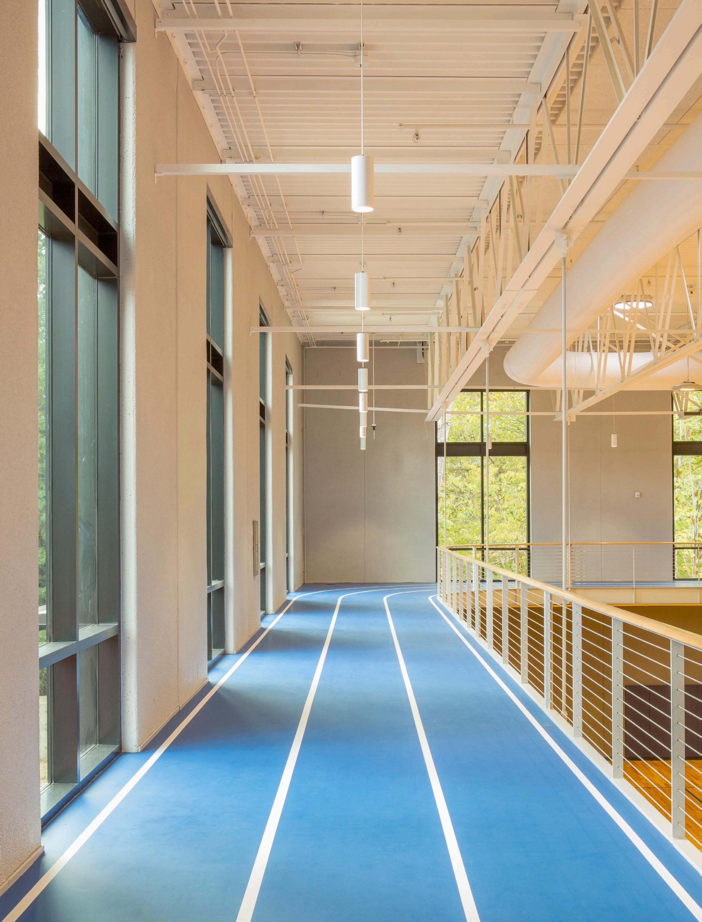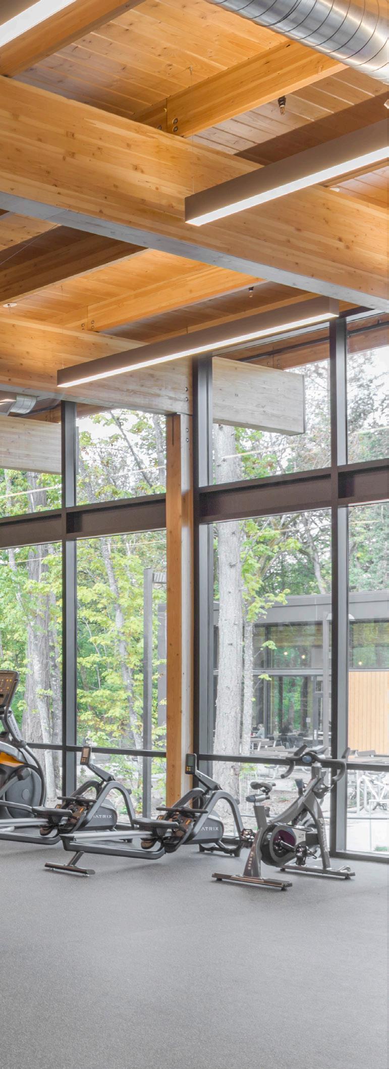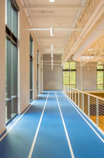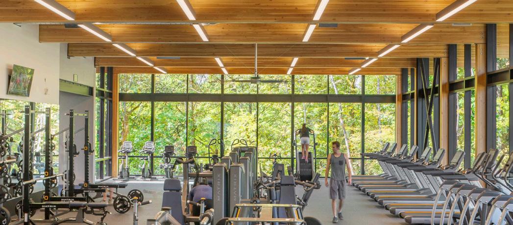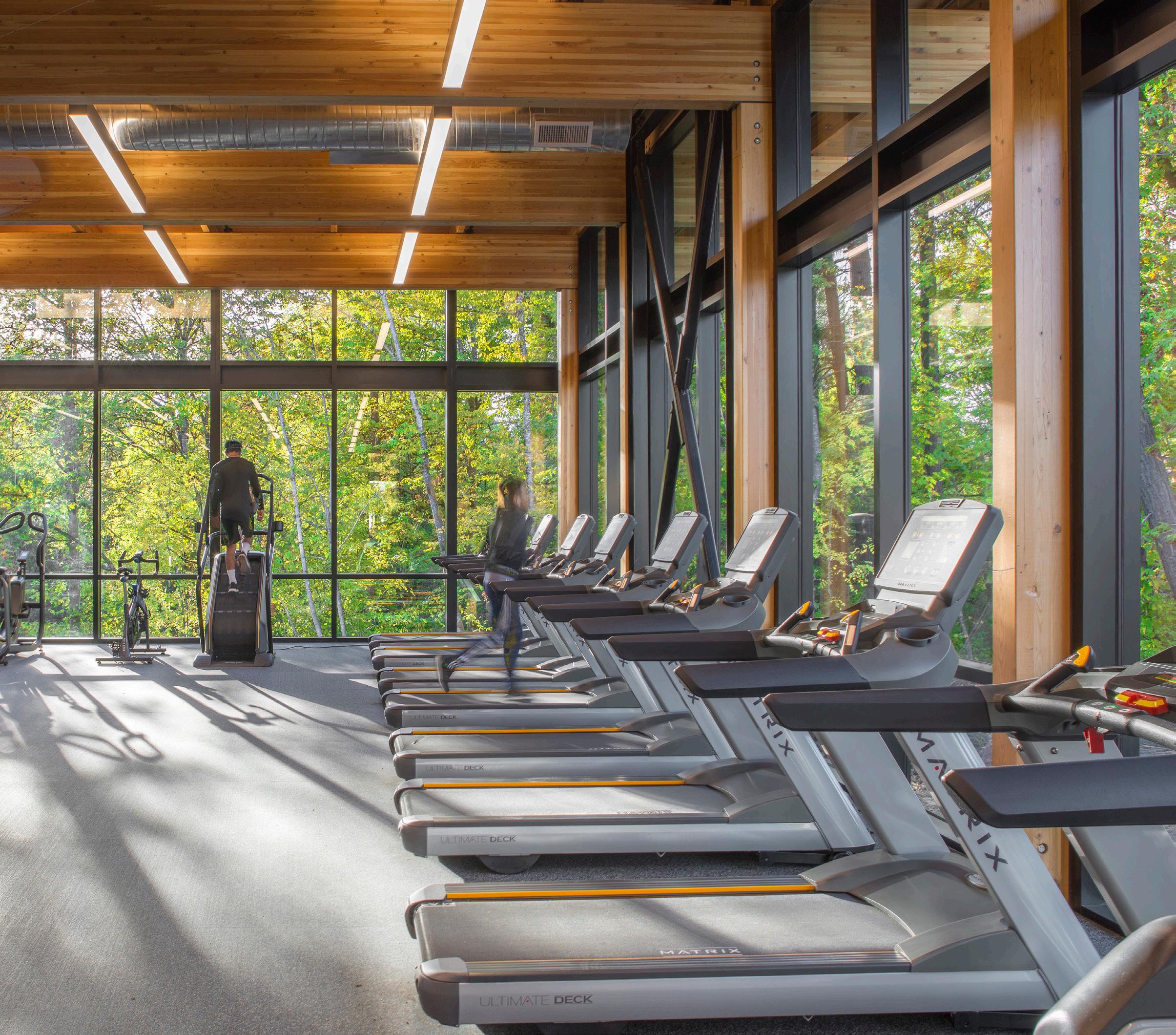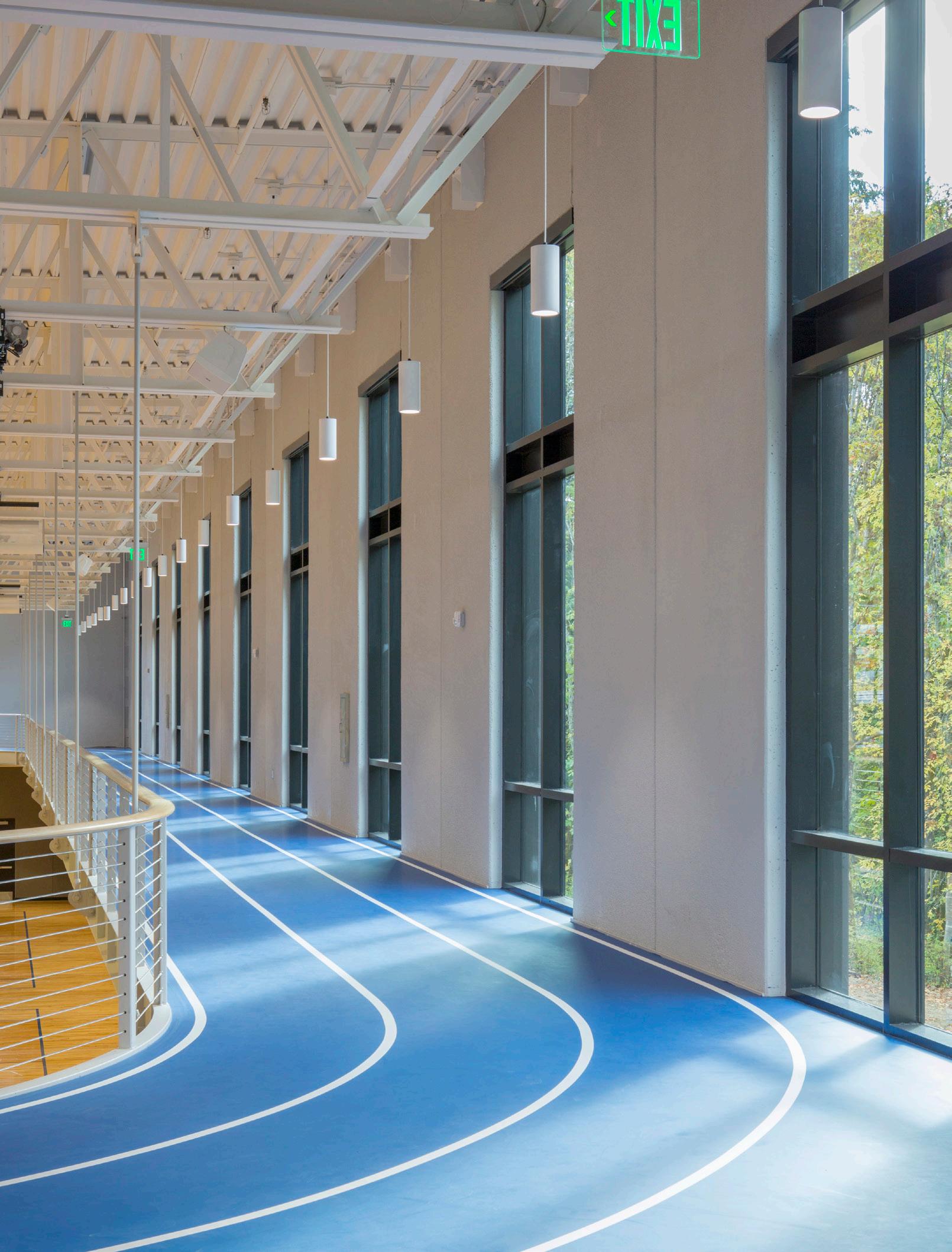 Description: This two-story recreation center for George Fox University houses three basketball/ volleyball courts, a running track, a fitness center, student office space and more. The student center alleviated demands on the school’s prexisting athletic facility, Wheeler Sports Center, providing space for intramural athletics as well as other large events like dances. The fitness center pavilion overlooks Hess Creek, providing soothing views into the forest. Other features include a rock climbing wall, two movement studios, a student lounge and 5,400 feet of office space for student government and clubs.