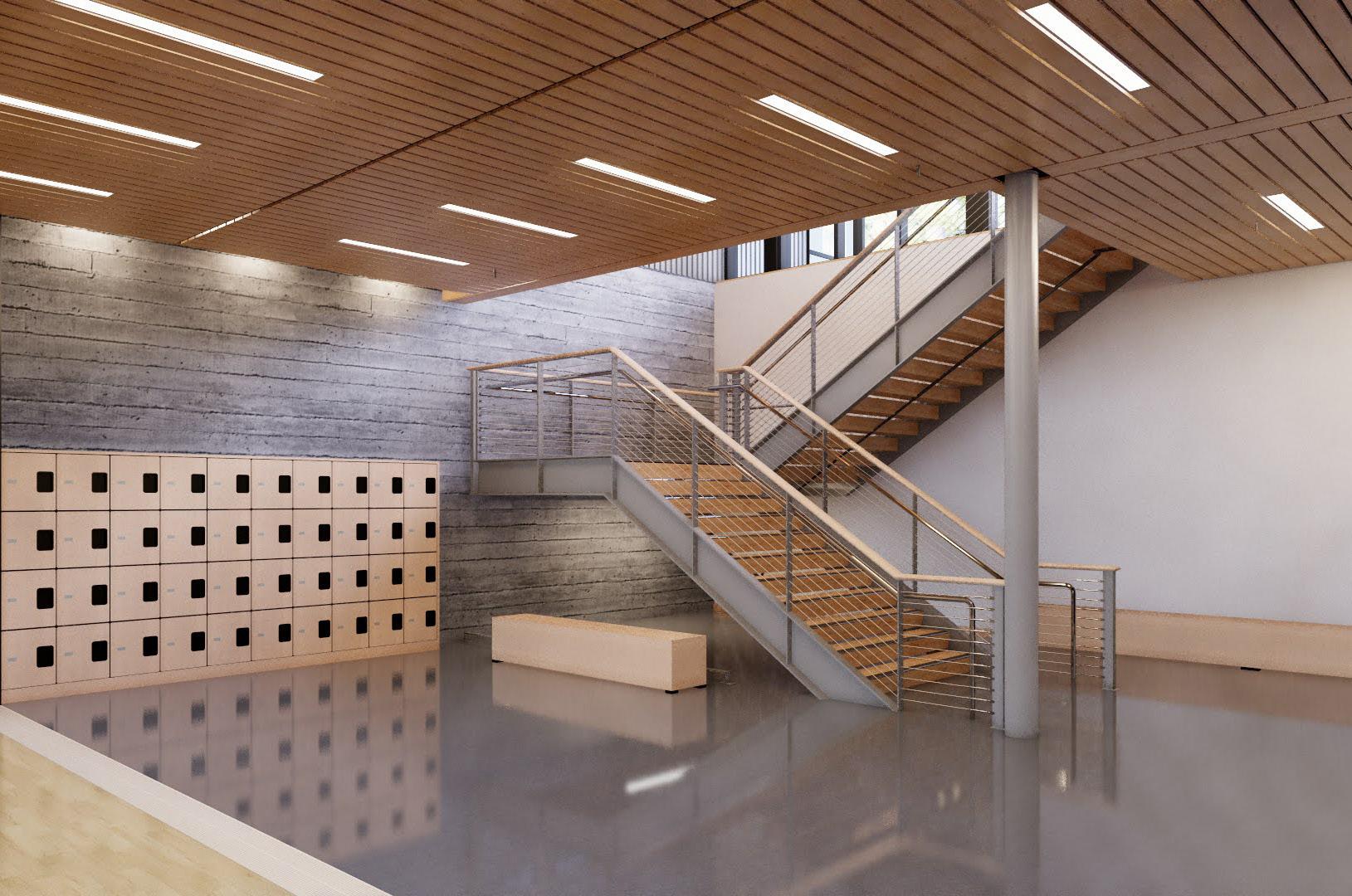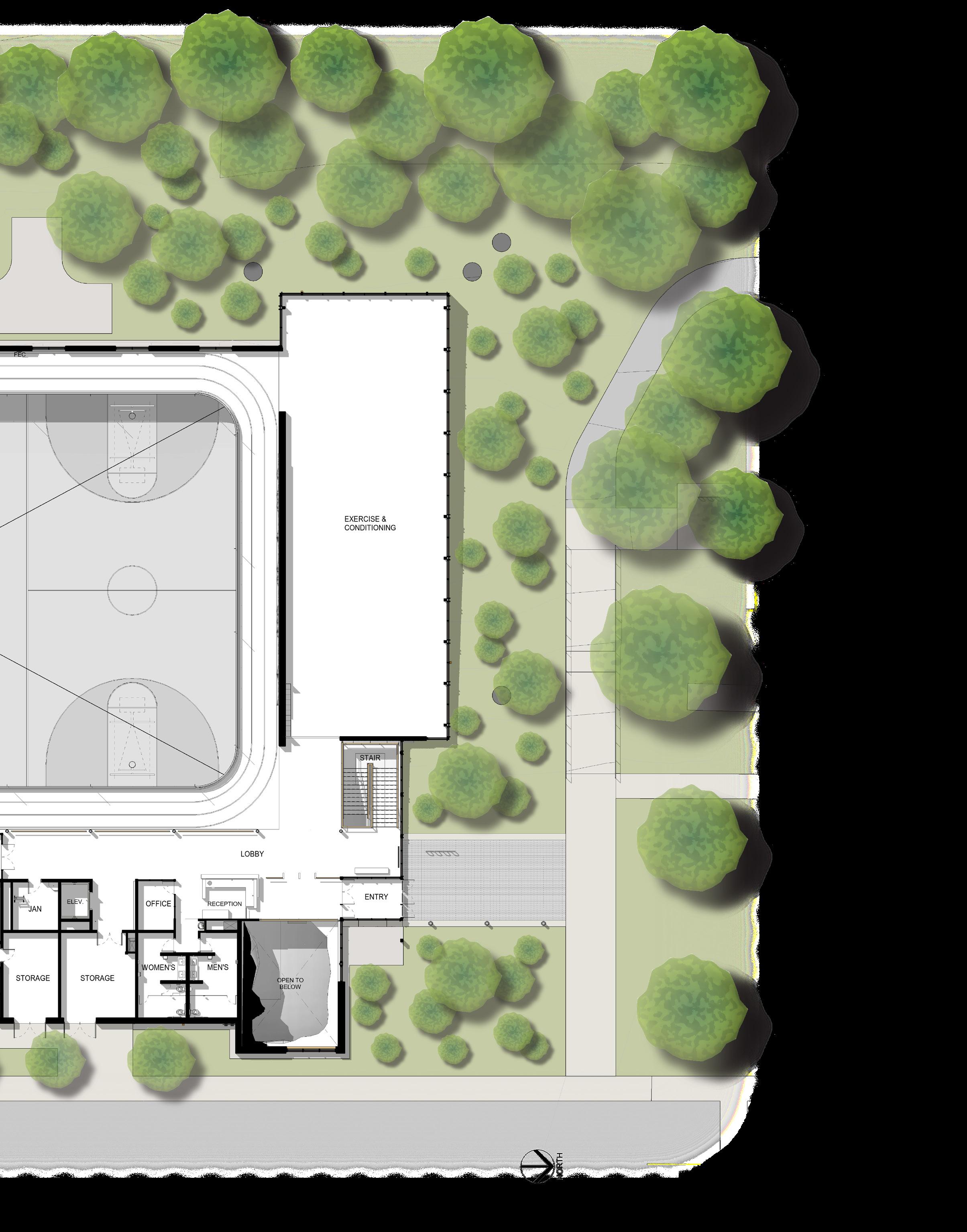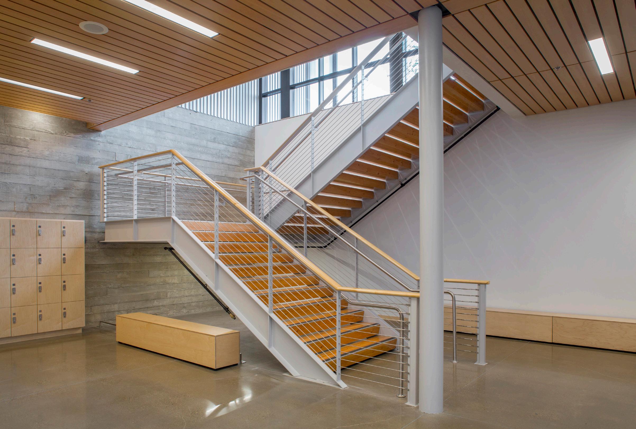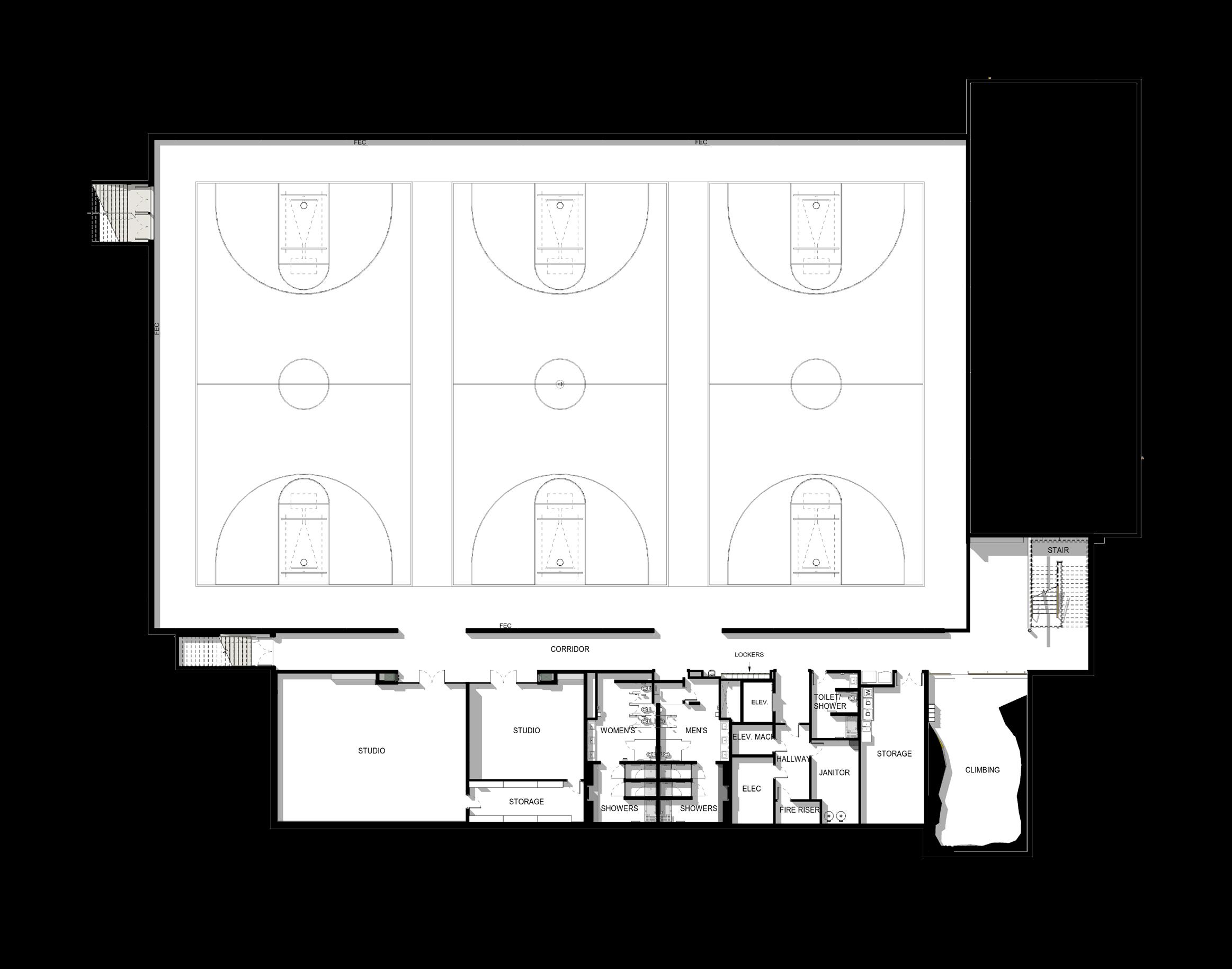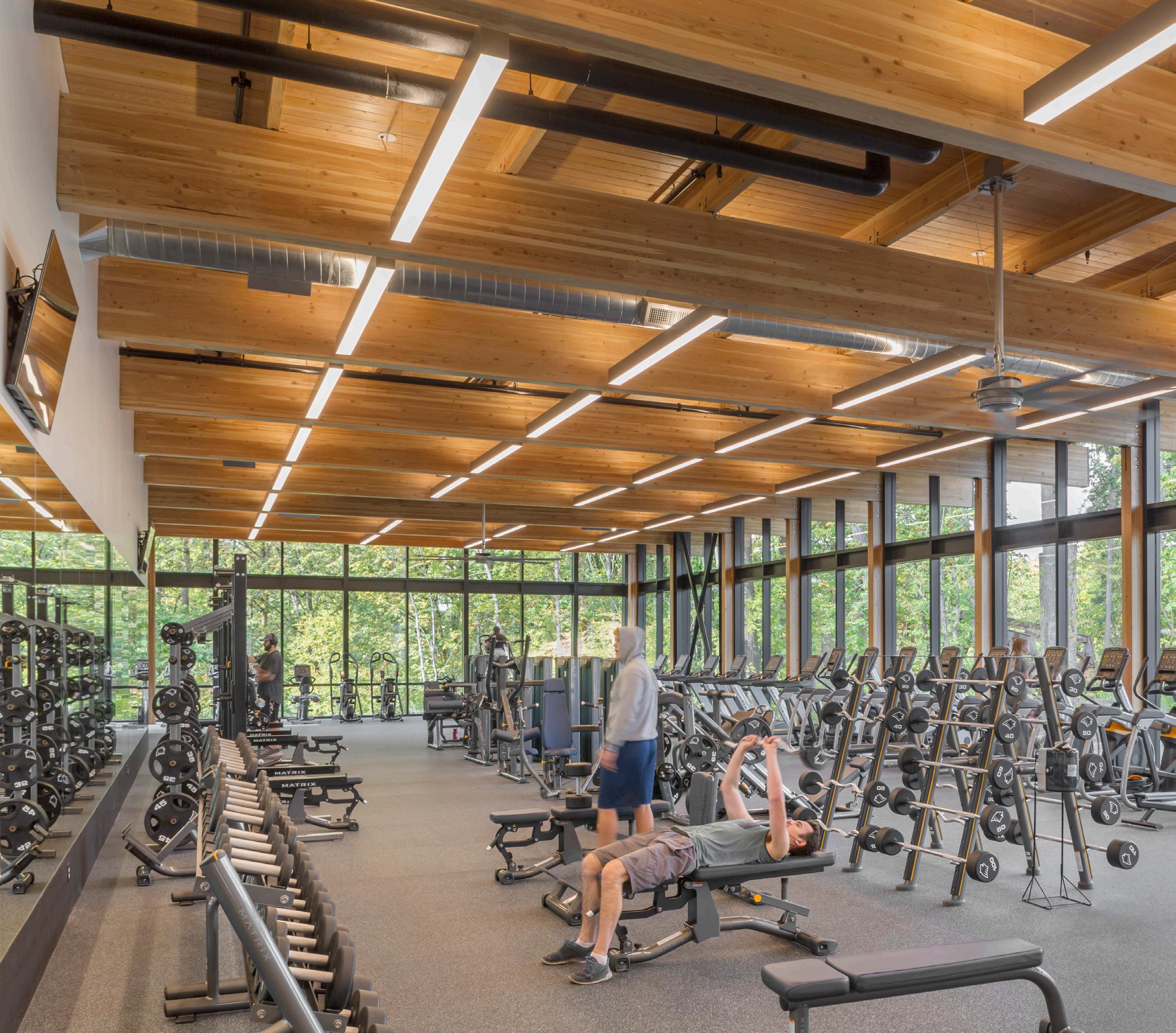 Description: This two-story recreation center for George Fox University houses three basketball/ volleyball courts, a running track, a fitness center, student office space and more. The student center alleviated demands on the school’s prexisting athletic facility, Wheeler Sports Center, providing space for intramural athletics as well as other large events like dances. The fitness center pavilion overlooks Hess Creek, providing soothing views into the forest. Other features include a rock climbing wall, two movement studios, a student lounge and 5,400 feet of office space for student government and clubs.