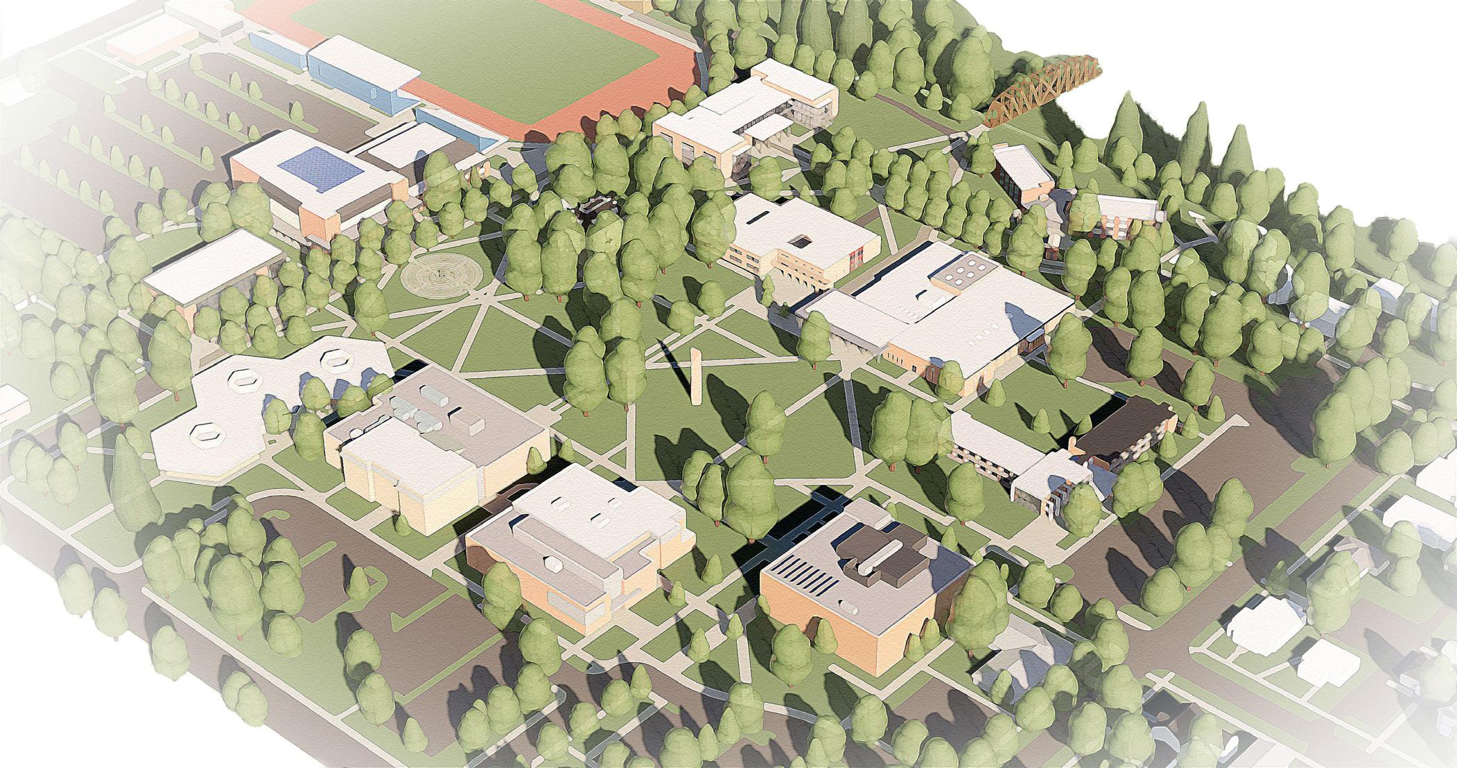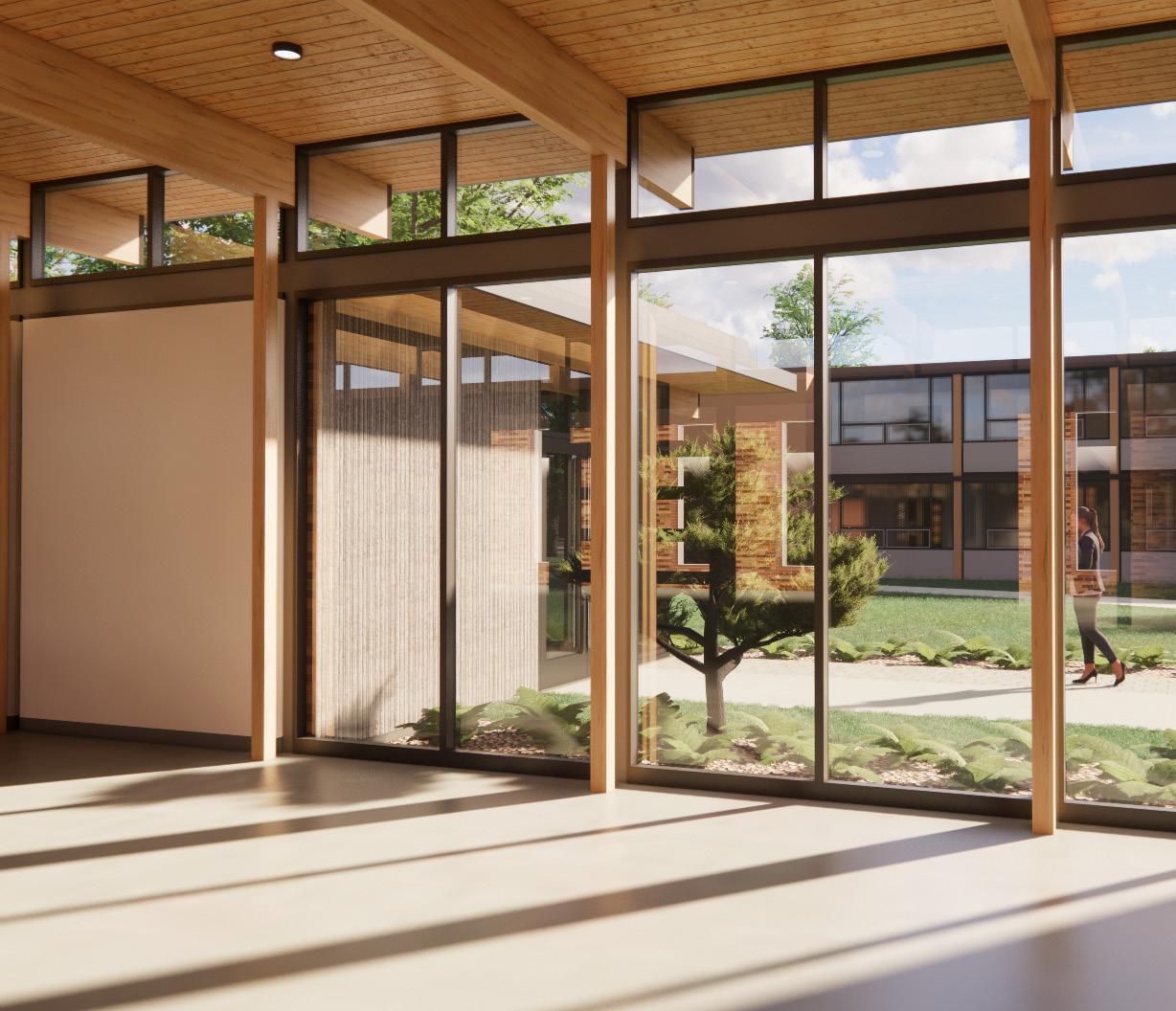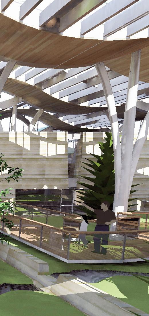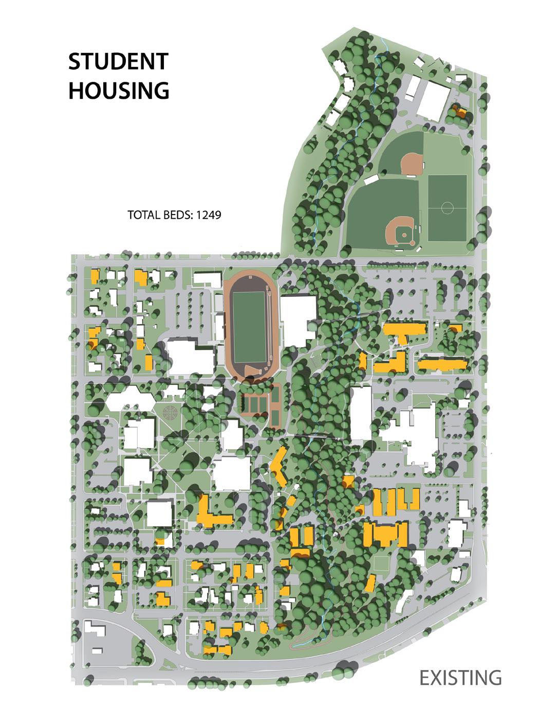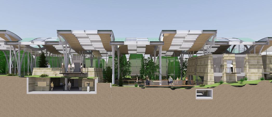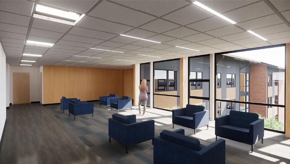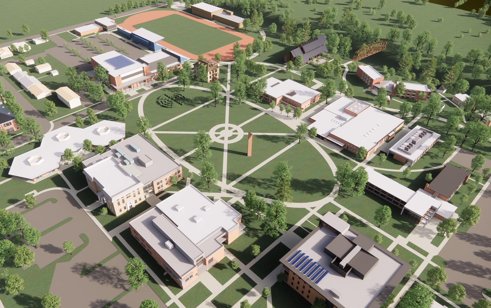Description: We were tasked with envisioning strategic growth opportunities for the campus, identifying key areas for expansion. The plan focused on enhancing public spaces and improving walkability by strengthening circulation routes and integrating new academic quadrangles to create a cohesive campus experience. Parking was relocated to the periphery, allowing for more pedestrianfriendly zones and open spaces.