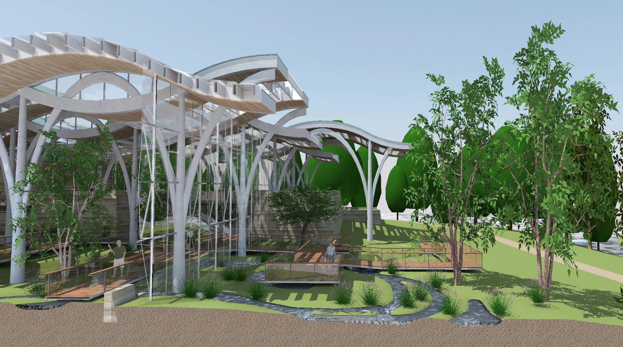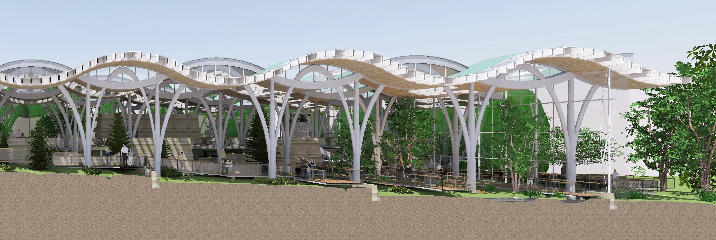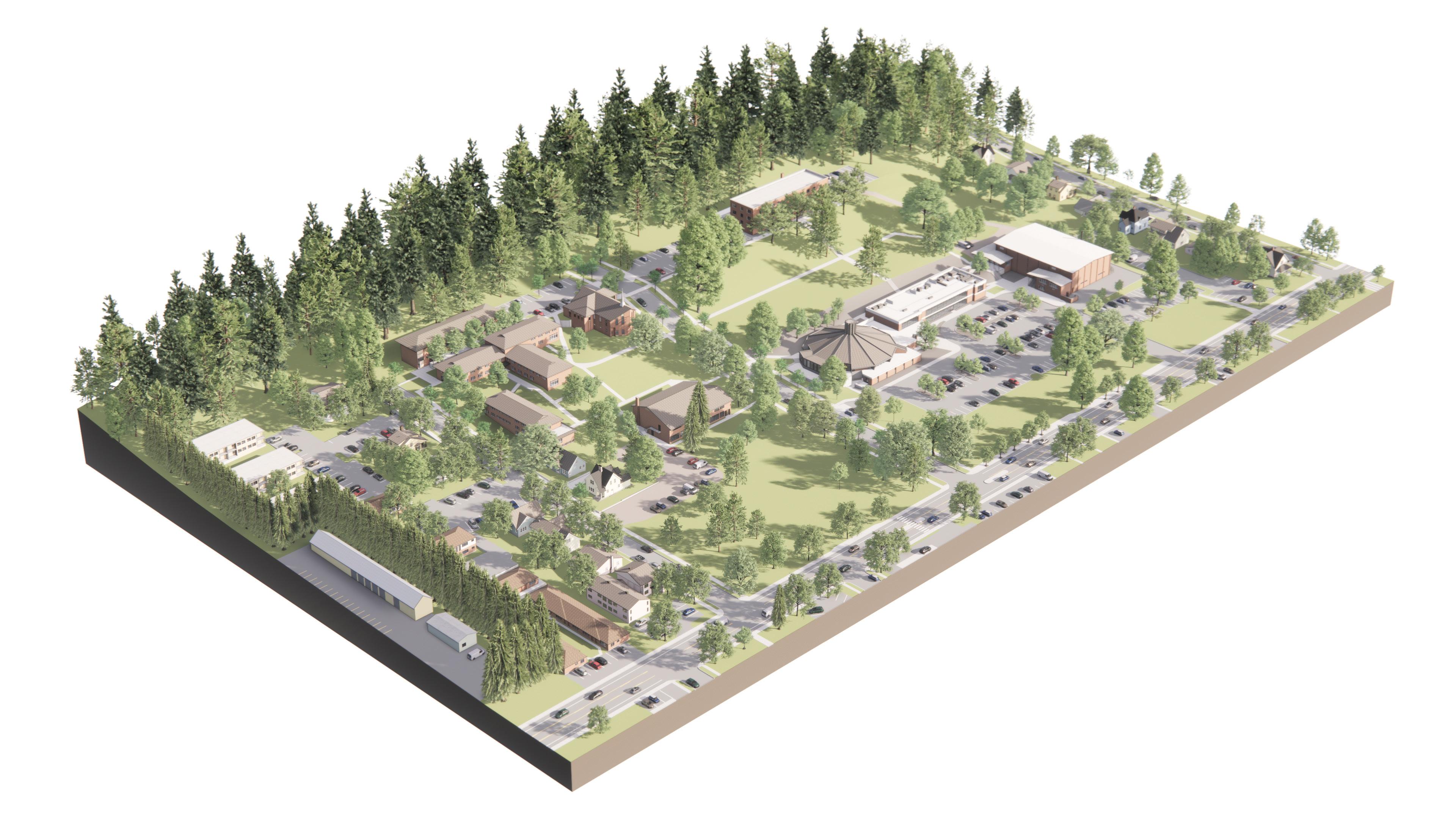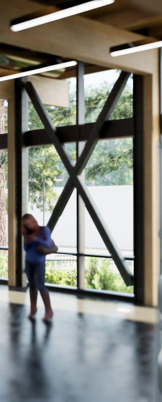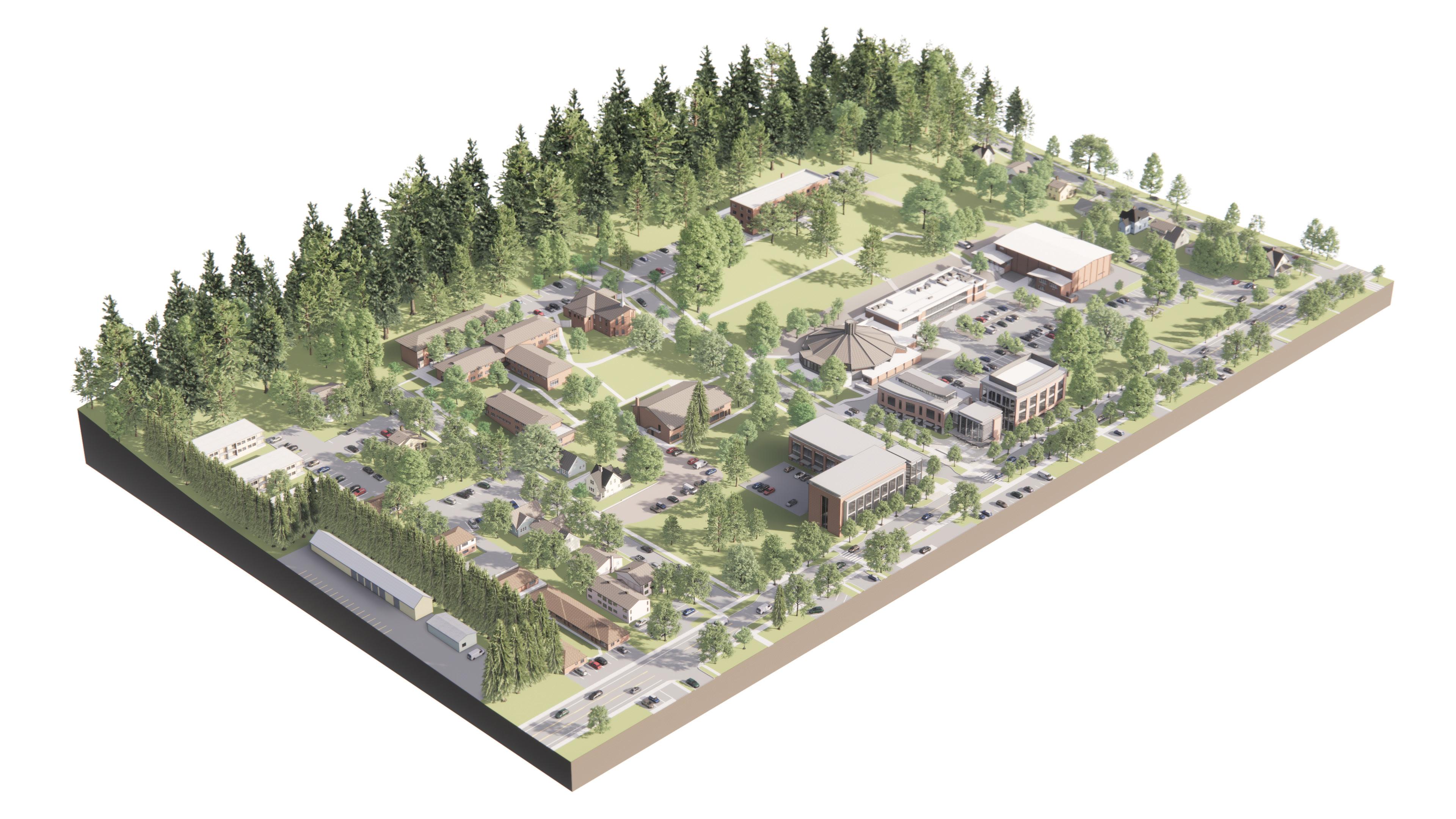 Description: We were tasked with envisioning strategic growth opportunities for the campus, identifying key areas for expansion. The plan focused on enhancing public spaces and improving walkability by strengthening circulation routes and integrating new academic quadrangles to create a cohesive campus experience. Parking was relocated to the periphery, allowing for more pedestrianfriendly zones and open spaces.