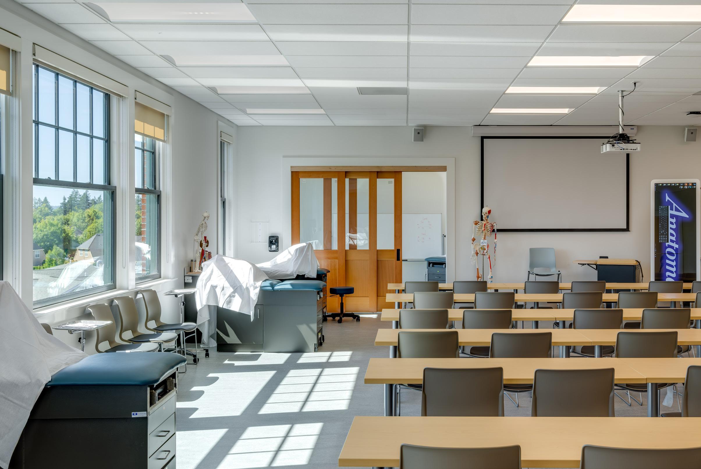 Description: The Medical Sciences building provides a new, off-campus center for the Physical Therapy and Physician’s Associate graduate programs, with classrooms, labs, mock exam rooms, faculty offices, and student support and gathering spaces. To simulate real-world medical environments, the facility also includes both a traditional and virtual anatomy lab.