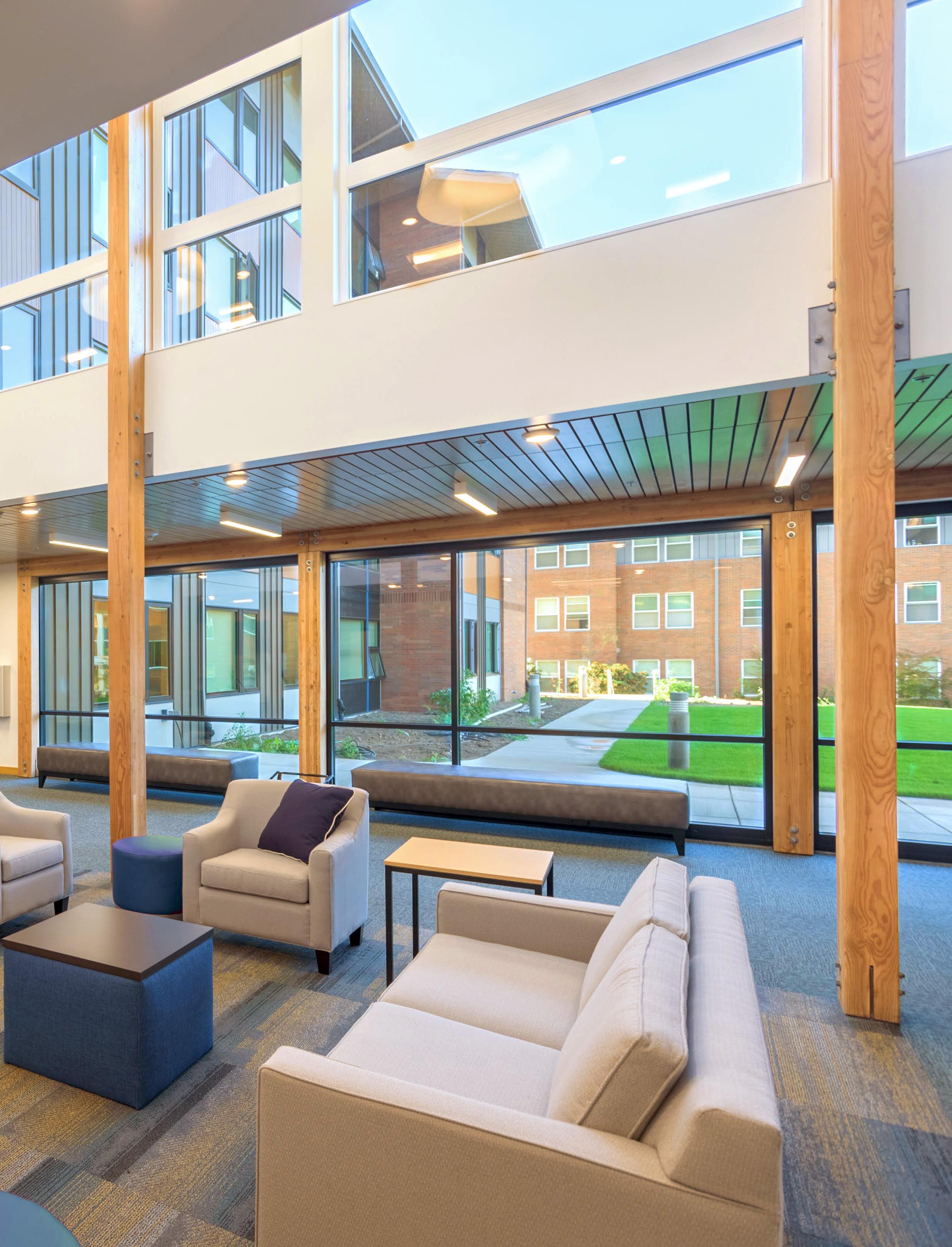 The exterior design for the building was chosen to compliment the architecture styles found in downtown Newberg’s historic core. An arched entry welcomes students, professors, and community residents who come to visit the programs’ clinics. To save cost, light frame wood construction was utilized for the primary structure, with acoustic treatment between floors.