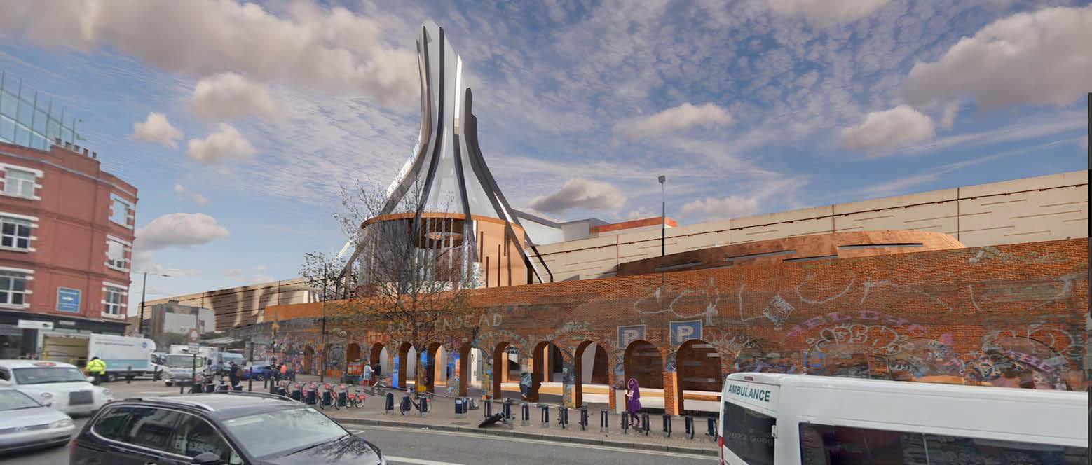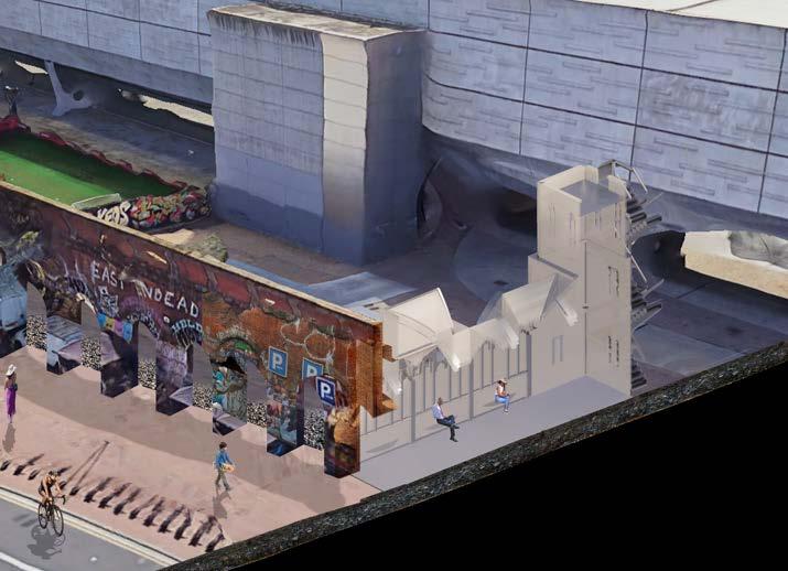 ‘Arch Fusion’ blends heritage and creativity, transforming Shoreditch’s iconic arch typology into a temporary gallery. Inspired by the architectural language of Temple Church, the design incorporates Gothic and classical elements, creating a dynamic space where tradition meets personalisation. The repeated arches, adapted from local influences, serve as canvases for artistic expression, offering a unique setting that celebrates both the past and Shoreditch’s vibrant artistic spirit.