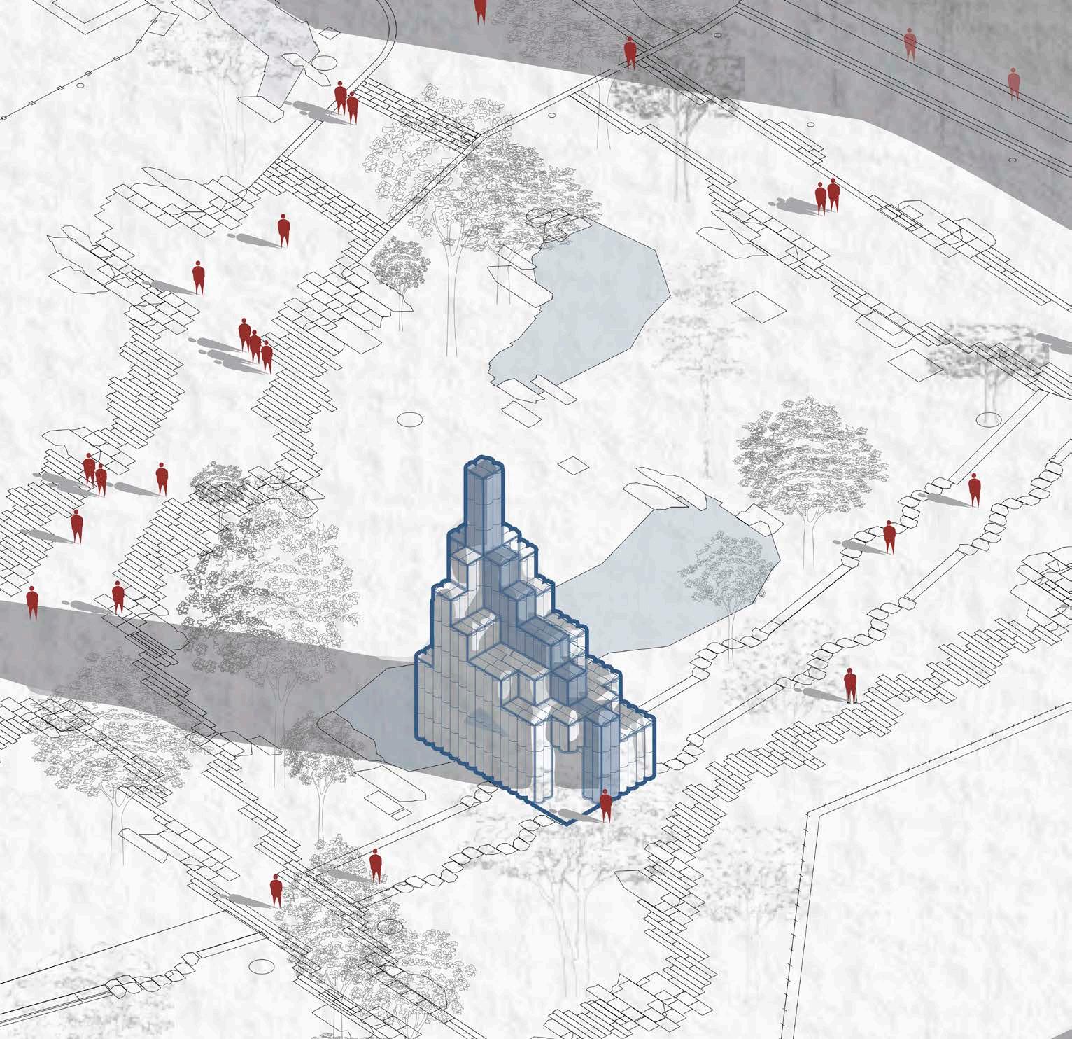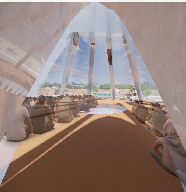 In the heart of Shoreditch, a multi-faith reflective space and library is testament to the rich architectural heritage and sacred forms that have shaped the local community. The design follows the concept of a symbolic pathway to enlightenment, guiding visitors through knowledge towards a contemplative space. The peak experience is reached in the sacred space, fostering unity and shared spirituality among visitors of different faiths. It provides a sanctuary where people are inspiried to seek knowledge, find solace, and connect with something greater than themselves. 06/2023