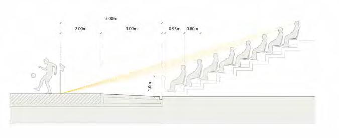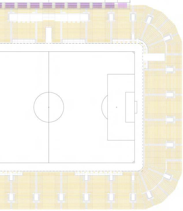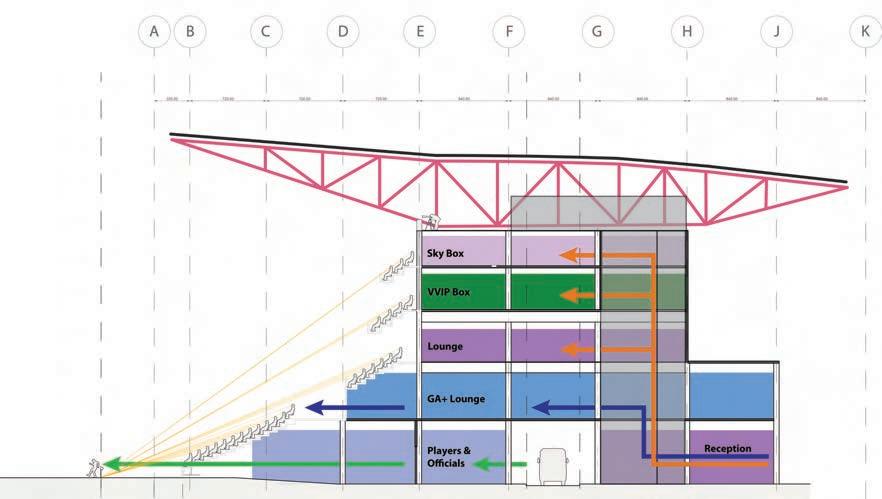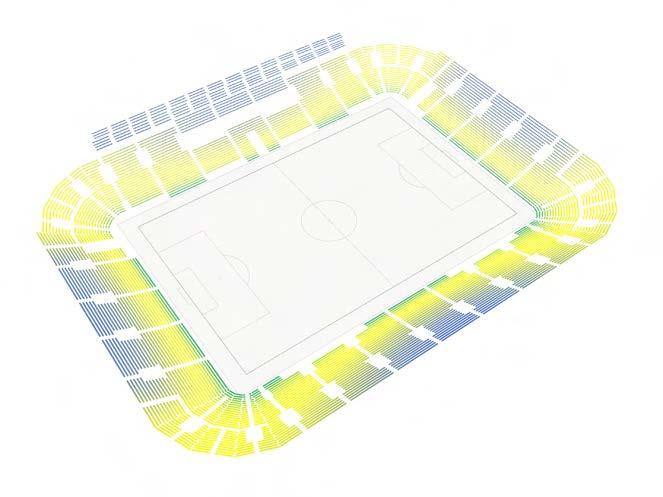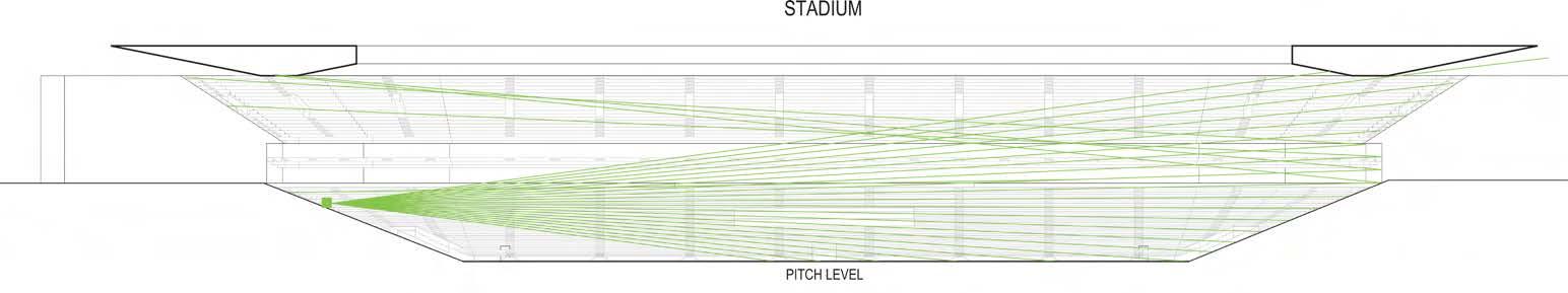 The below bowl was the outcome of the iterative design centred around accessibility, ticket types, and the positioning of fans’ eyepoints to ensure they have high scoring C and A value views of the pitch. The C value is mandated by FIFA whilst the A value scores the perceived field of play in view; creating these graphics demonstrated the implications of design changes on ultimately the fan experience.
