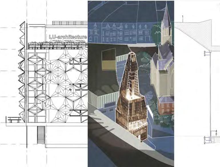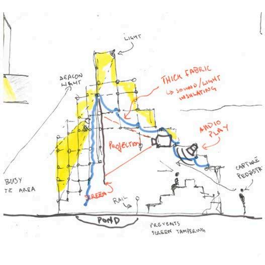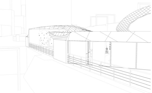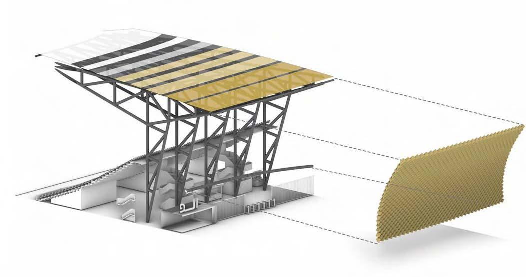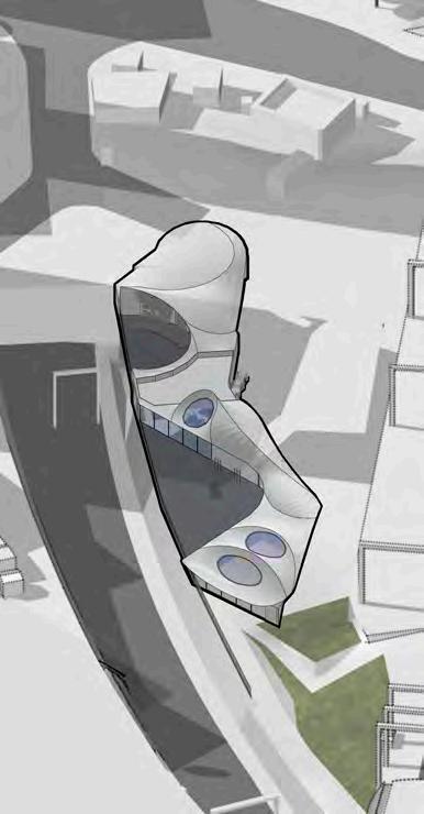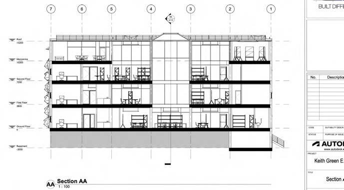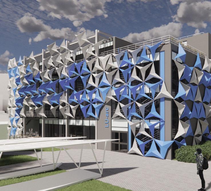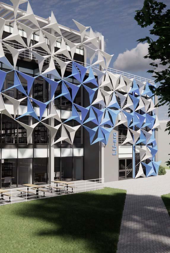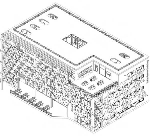 The collaborative project’s proposed extension to the Keith Green building emphasises the journey from novice to expert which begins on the ground floor; the Part A students commence learning in this space and progress up the floors of the Keith Green building as they move through their degree. This is visually highlighted by the central void which connects all three floors and cohorts, the parametric façade (taking inspiration from the design of the Al Bahar Towers) is designed via grasshopper and linked to light intensity parameters to enable responses to changes in the surrounding climate - a passive measure to reduce energy demand and improve the building efficiency. 03/2023