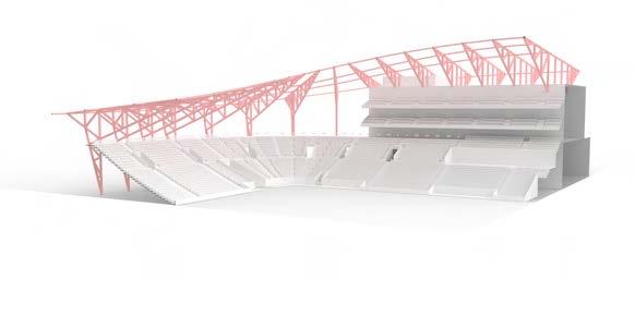 This project is a 20,000-seat stadium, with the entry maintaining a strong focus on the club’s identity. The form and concept were driven by the club’s branding and ethos, while the facade was tightly integrated with the minimum roof-line required to cover all seating and span the steel frame. This approach minimized excess materials and created a compact, efficient structure. Compliance and safety were key priorities in the master-plan, with crowd flow and emergency/VIP access carefully distributed around the stadium’s perimeter.