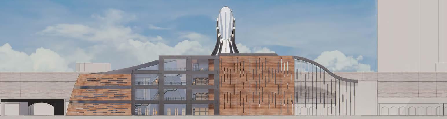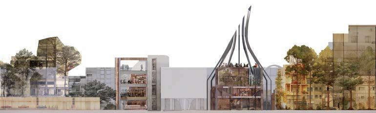 Inspired by Nottingham’s industrial legacy, the Contemporary Community Space extends the gallery with a five-storey tower, celebrating the city’s heritage of craftsmanship and fabrication. A modular façade of steel, timber, and polycarbonate creates an ethereal glow, connecting the site to its surroundings. The programme unfolds from Forge Below, a heavy machinery workshop in the basement, to The Pinnacle, a viewing platform offering sweeping vistas of the regenerated district. With spaces dedicated to hands-on workshops, independent makers, and craft businesses, the extension fosters creativity, reconnecting Nottingham’s people to its industrial roots through light-filled, collaborative spaces. 10/2024