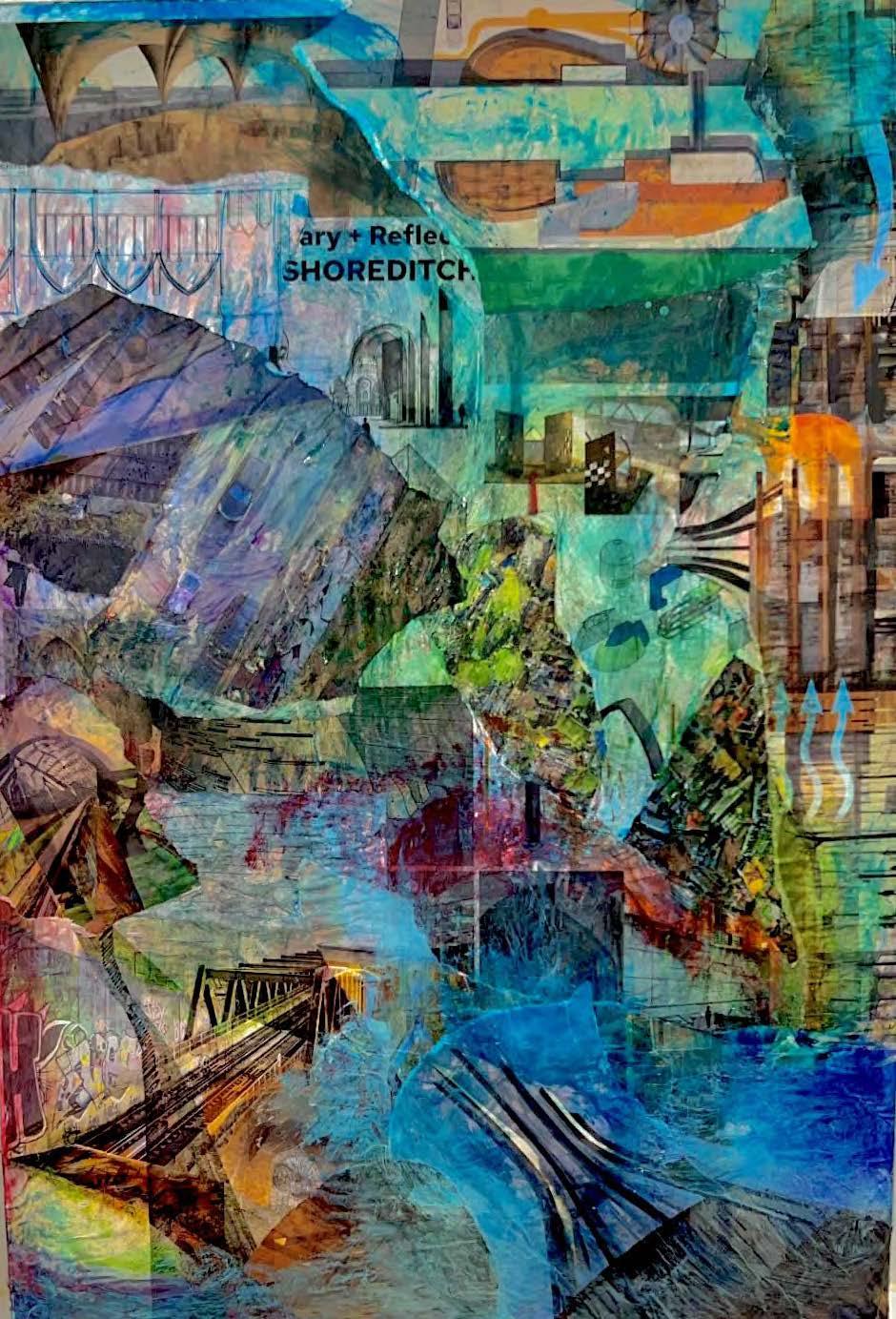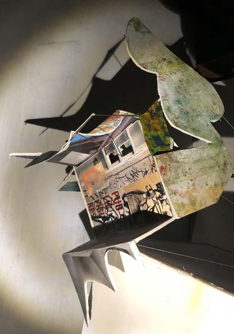 The photo- montage artwork relates to mapping of the Shoreditch area during the libray project, with the aim of producing a regionalist study. The second is a mixed media, and painted board reinventing the library project’s deliverables in an abstract reinvention of prints presented over pin ups of the Semester.