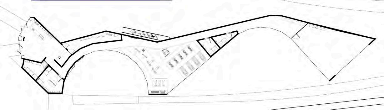 The Forge is a dynamic sports facility uniting students, local youth, and Coal Drops Yard workers through shared sports experiences. The design activates site boundaries to define a public realm, while skylights and southeastern-facing glazing bring natural light into the gym and studio. An open-plan gym, outdoor bouldering, and a multifunctional studio are complemented by a welcoming café, fostering social interaction and encouraging locals to drop in. Visual connections between spaces inspire users to explore new activities, while patterned glazing along public pathways balances privacy with curiosity, inviting engagement without compromise.