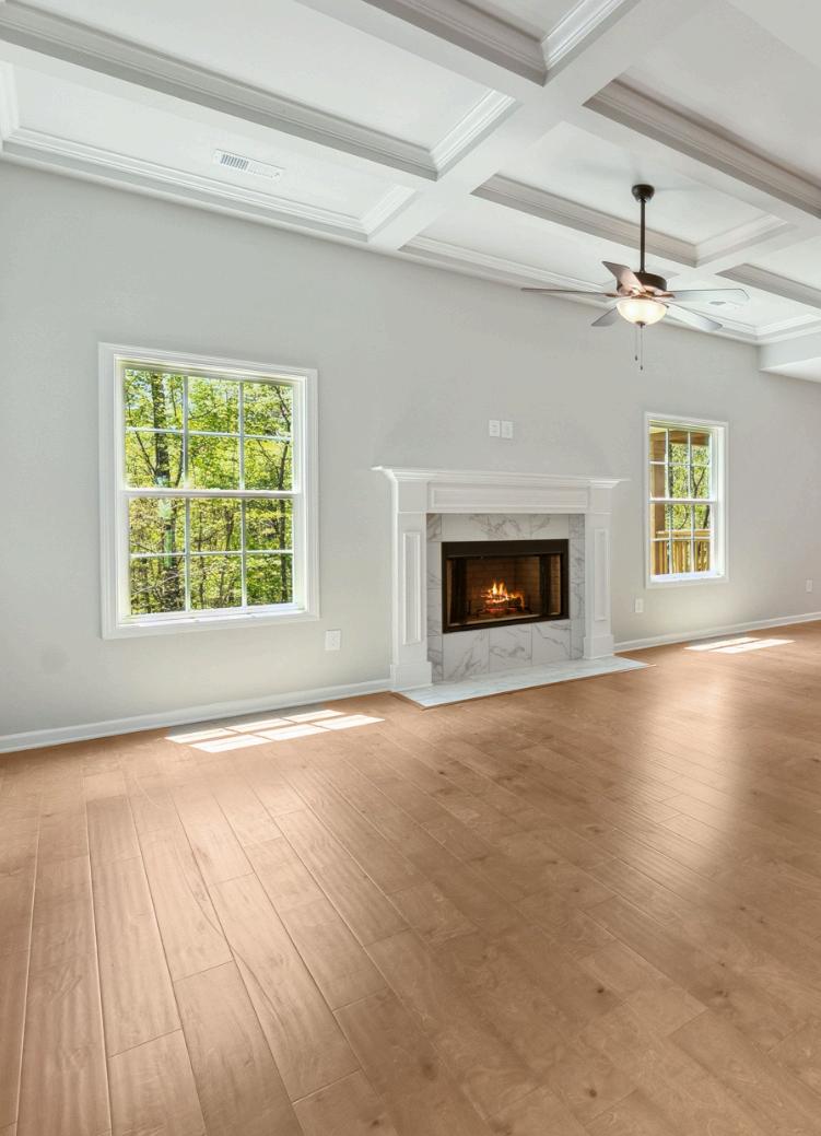 Engineered Oak Hardwoods are selected for the Main Level Living Areas of the Home.