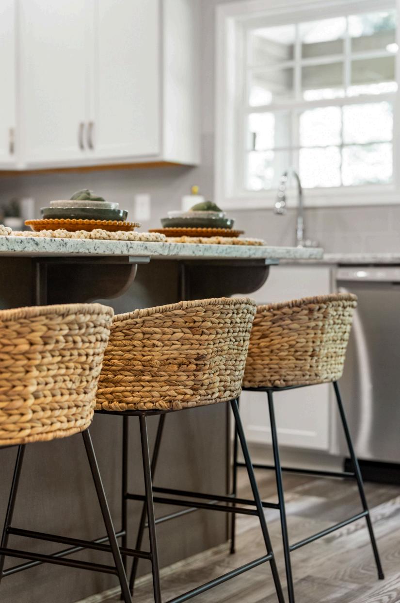 Showcase personality with these creative backsplash options to introduce a natural stone texture and a pop of color, creating a balanced backdrop.