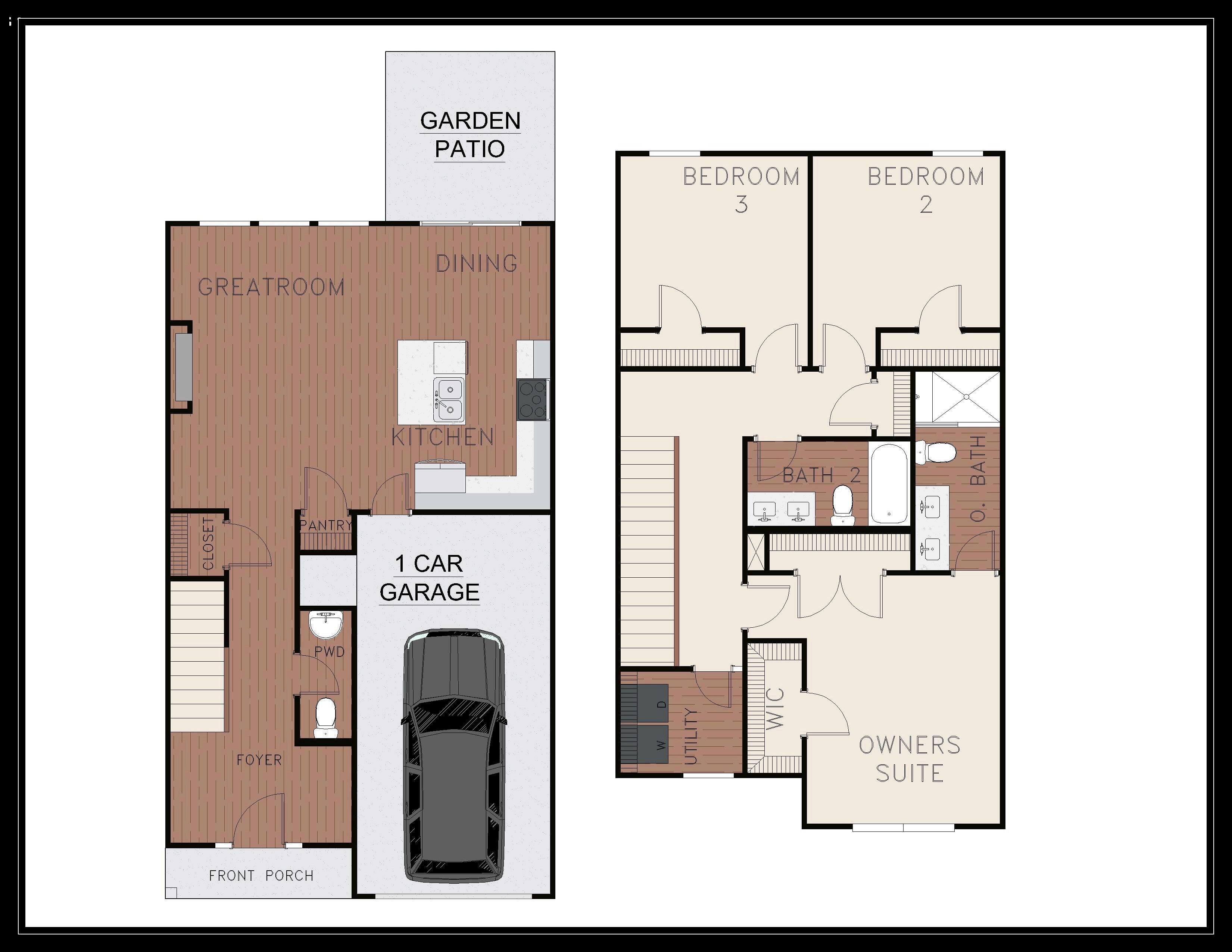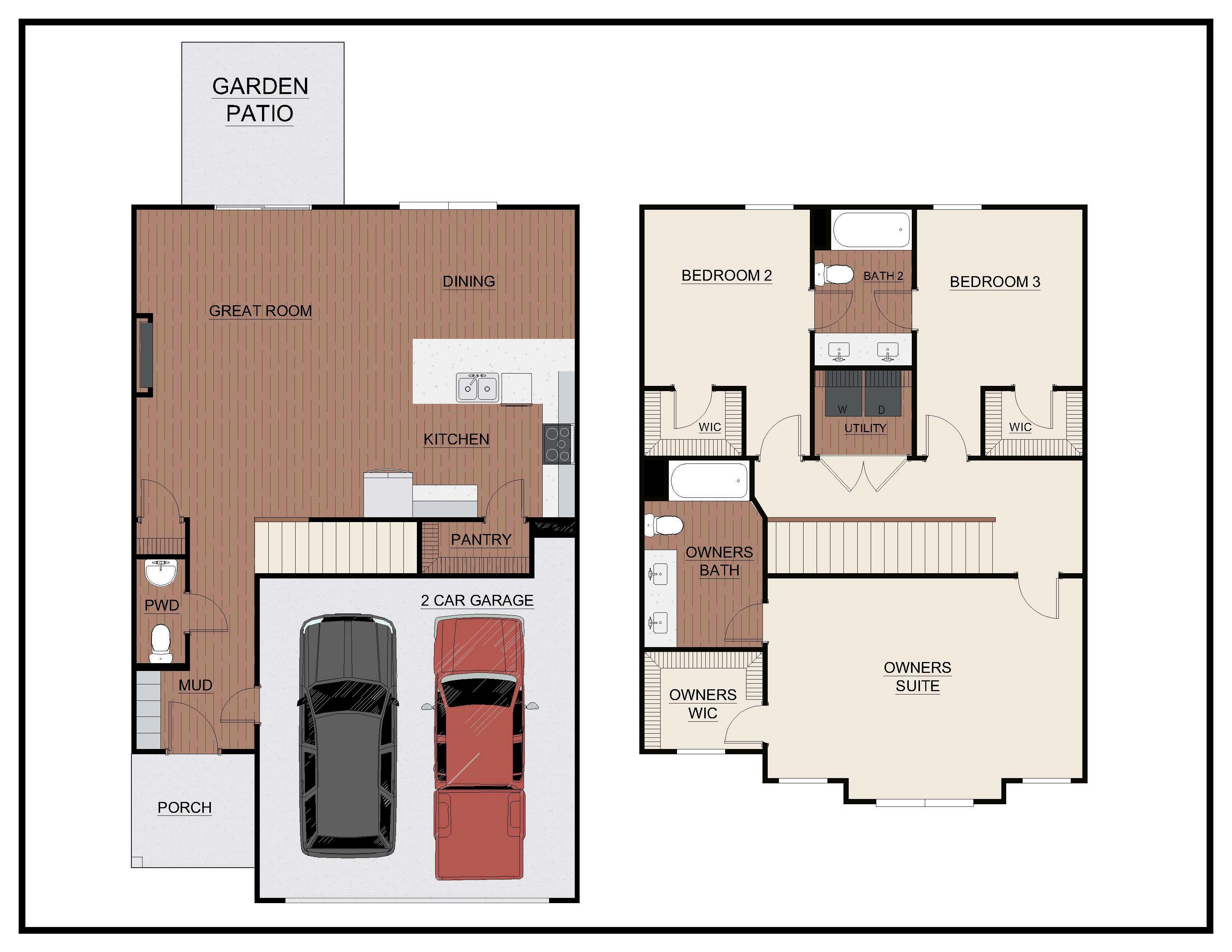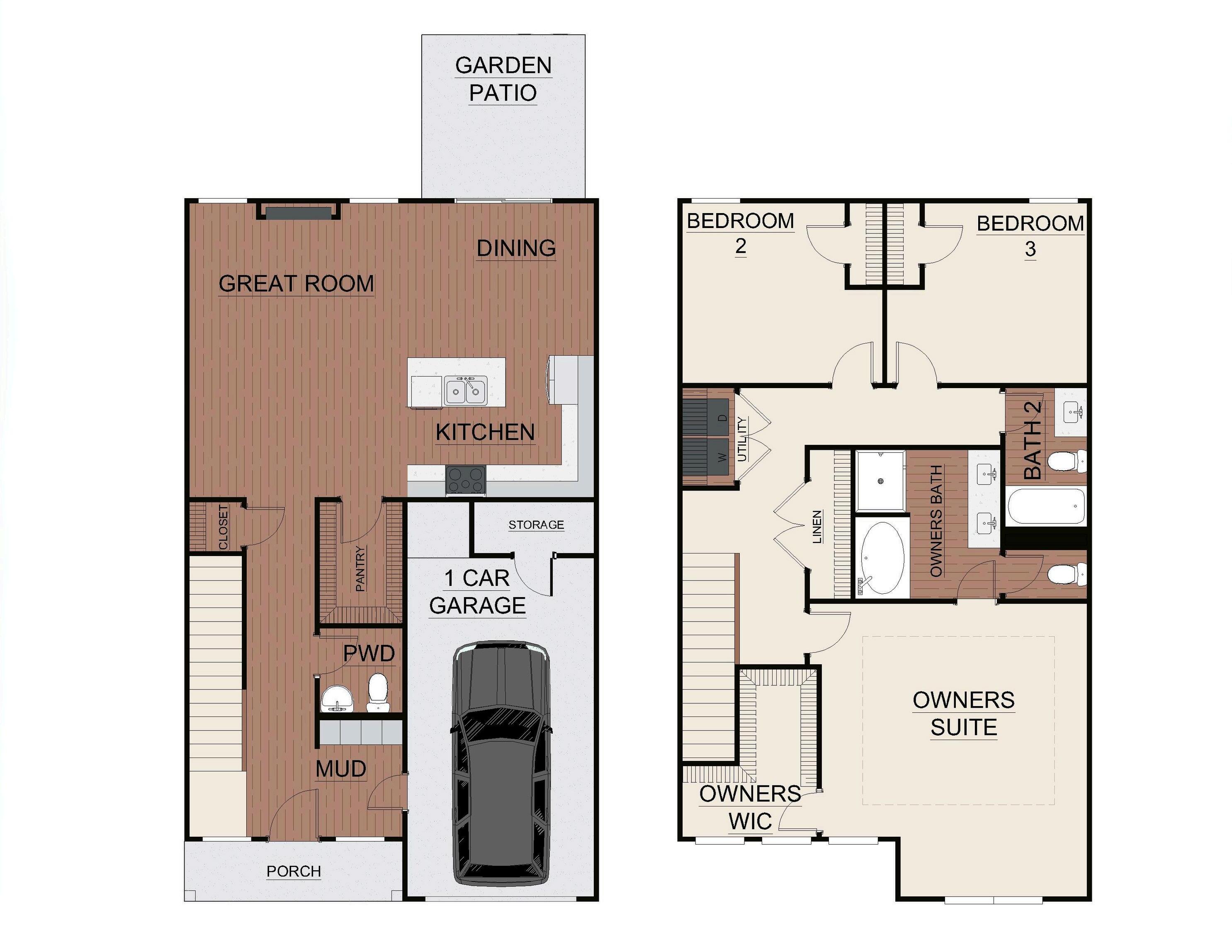 Exterior material placement and garage entry is determined by community design. Please see included features page for community of interest, visit our on-site New Home Specialist, or contact our Online Sales Counselor for more specific design information.